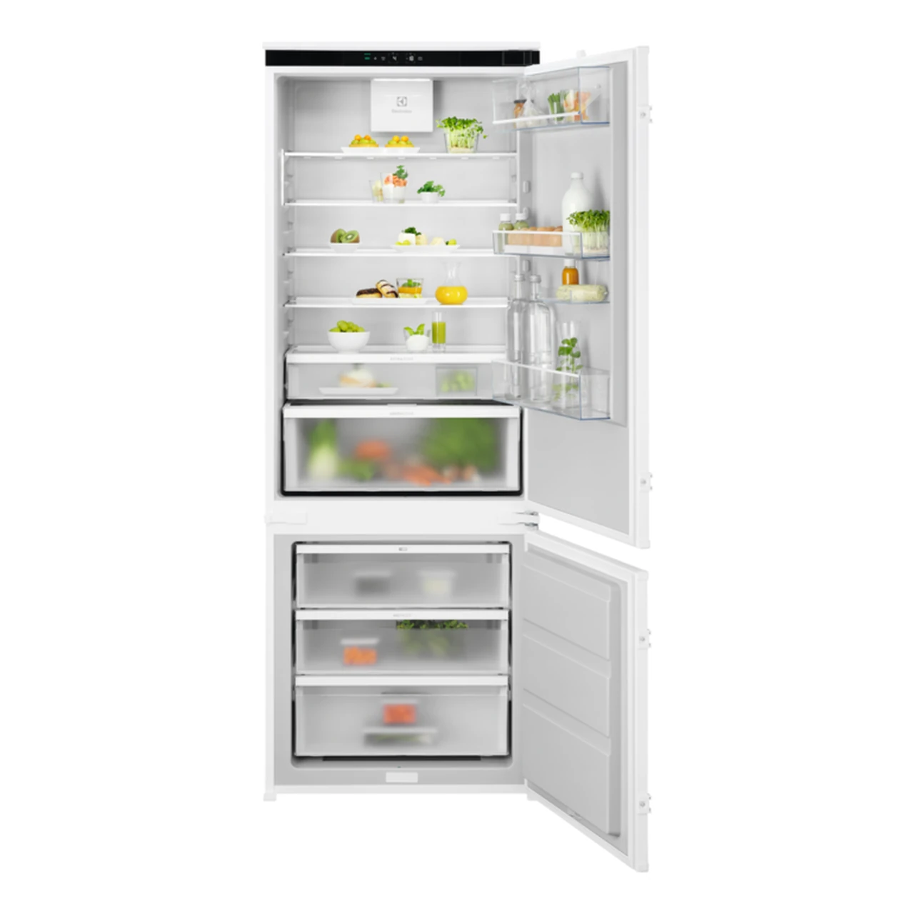 Integreeritav NoFrost külmik-sügavkülmik GreenZone sahtliga ELECTROLUX E7TNGE75S, 70 cm, 284/87 L, E energiaklass, inverterkompressor, liughinged, 35 dB, valge