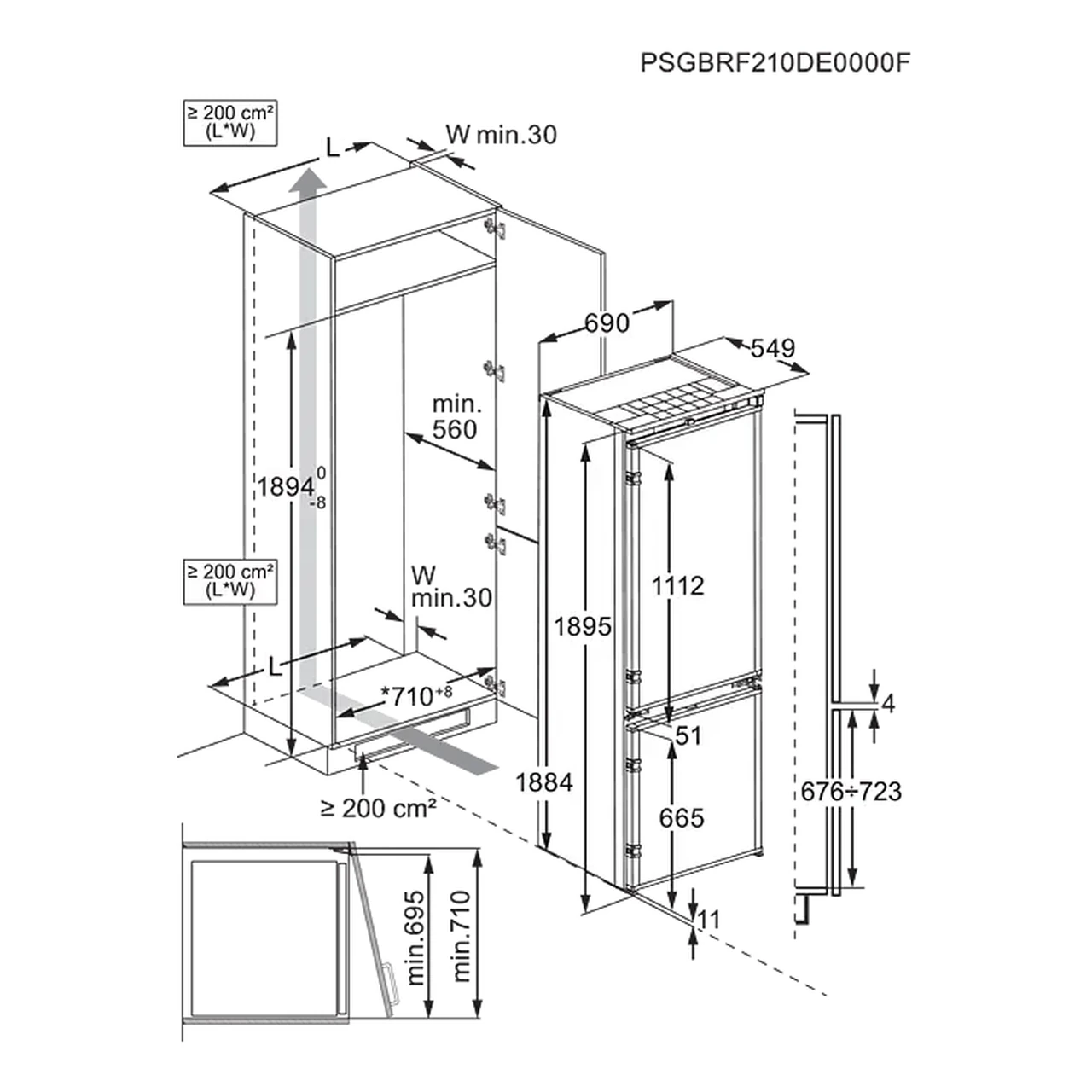 See integreeritav mudel on mõeldud paigaldamiseks köögimööbli kappi, kasutades liughingesid, mis ühendavad seadme ukse mööbliuksega. Enne paigaldamist kontrolli, et nišš vastaks tootja mõõtudele ja et oleks tagatud piisav ventilatsioon külmiku üla- ja alaservas. Uksed on ümber tõstetavad, mis võimaldab valida, kummale poole need avanema hakkavad vastavalt köögi planeeringule.