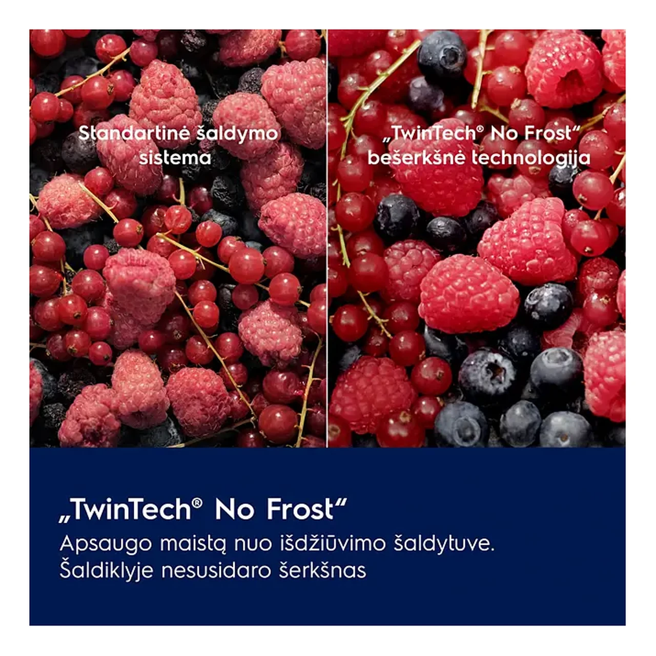 - TwinTech NoFrost kasutab kahte eraldi jahutussüsteemi külmiku ja sügavkülma jaoks, hoides sügavkülma jäävaba ja vähendades toidu kuivamist külmikus.