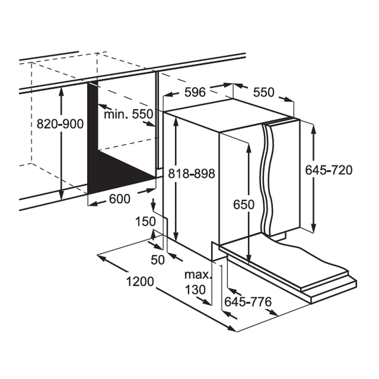 - Integreeritav 60 cm nõudepesumasin sisemise juhtpaneeliga, mis peidetakse köögimööbli ukse taha ja sobitub ühtlase köögifassaadiga.