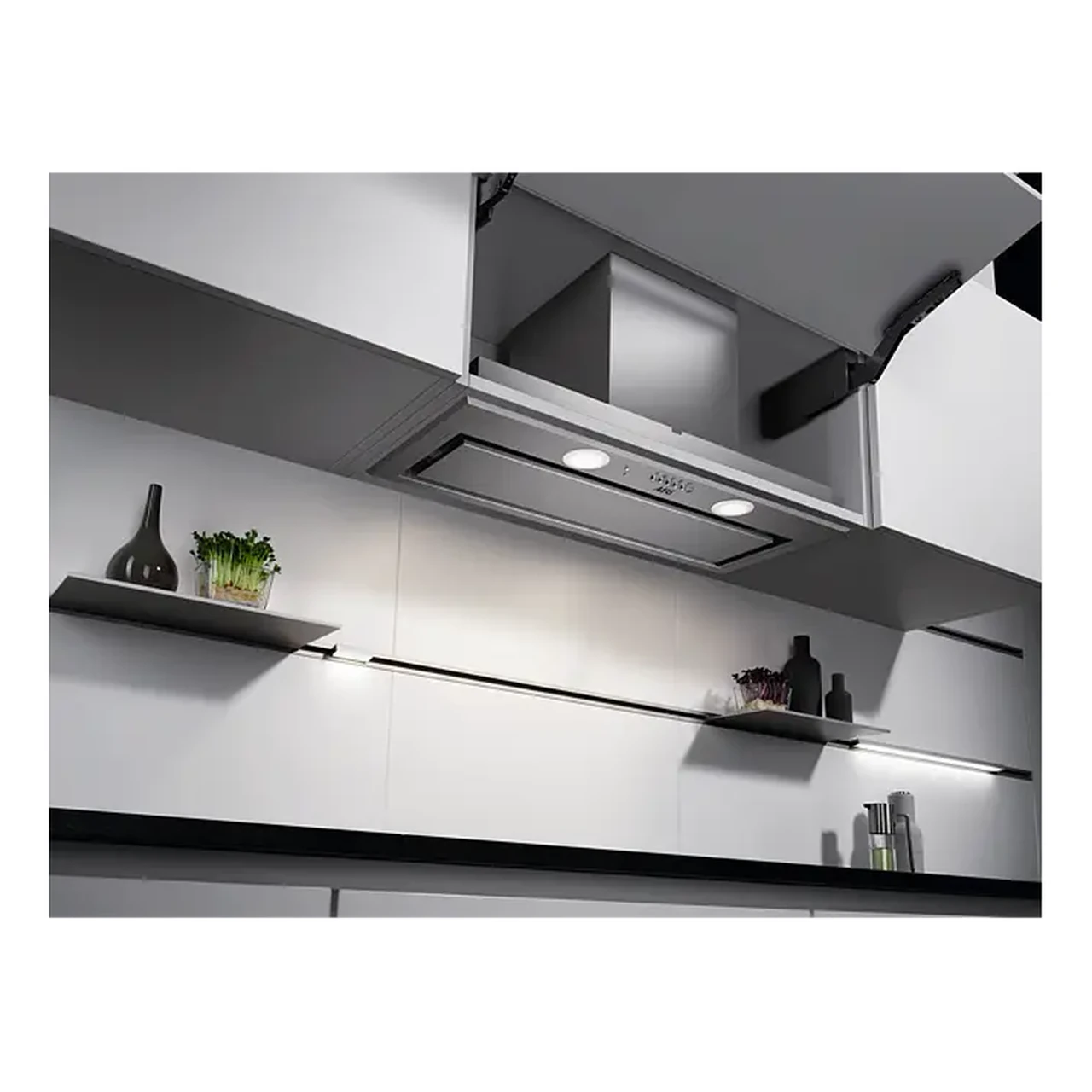 - Võimas mootor kuni 700 m³/h tagab tõhusa õhu väljatõmbe nii tavarežiimil kui ka intensiivse boost-funktsiooniga, sobides hästi ka avatud köögilahendustele.