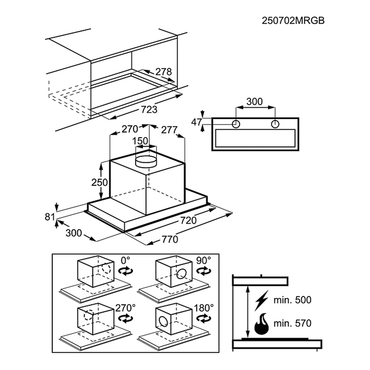 AEG DGE5861HM on mõeldud integreerimiseks köögimööbli sisse, standardlaiusega 80 cm ja maksimaalse kõrgusega umbes 331 mm. Õhupuhastit saab kasutada nii õhu väljatõmbeks ventilatsioonitoru kaudu kui ka ringlusrežiimis kui väljatõmme ei ole võimalik. Ventilatsioonitoru läbimõõt on 150 mm ning seadmel on ka tagant väljatõmbe võimalus, mis pakub paindlikkust paigaldusel. Hob2Hood® funktsioon töötab Hob2Hood-toega pliidiplaatidega, seega tasub pliidiplaadi ühilduvus eraldi üle vaadata.