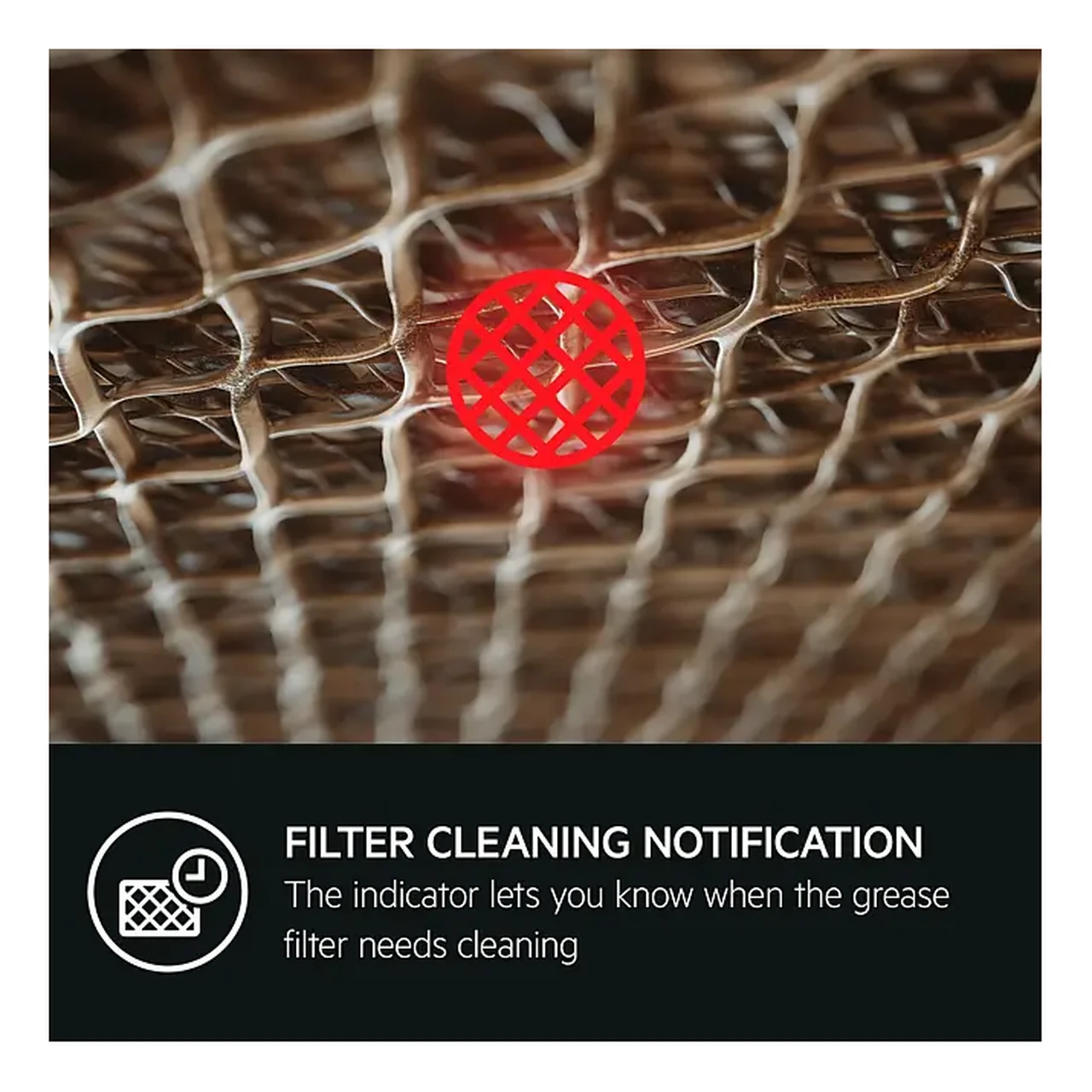 - Filtri hooldusmeeldetuletus annab märku, millal rasva- või söefilter vajab puhastamist, nii ei pea sa ise hooldusintervalle meeles pidama.