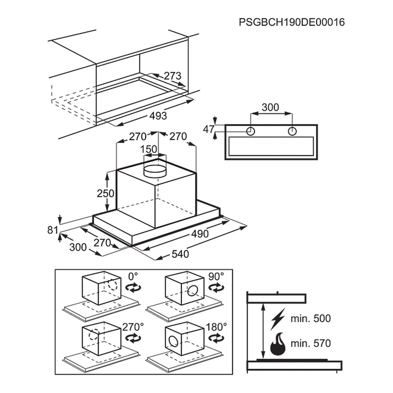 Õhupuhasti on mõeldud integreerimiseks köögimööbli sisse ja väljatõmbeks läbi õhukanali. Seadme standardne laius on umbes 54 cm, sügavus 30 cm ja maksimaalne kõrgus 331 mm, mis sobib tavapärasesse seina- või ülakappi. Õhukanali ühendus on ette nähtud 150 mm läbimõõduga torule.