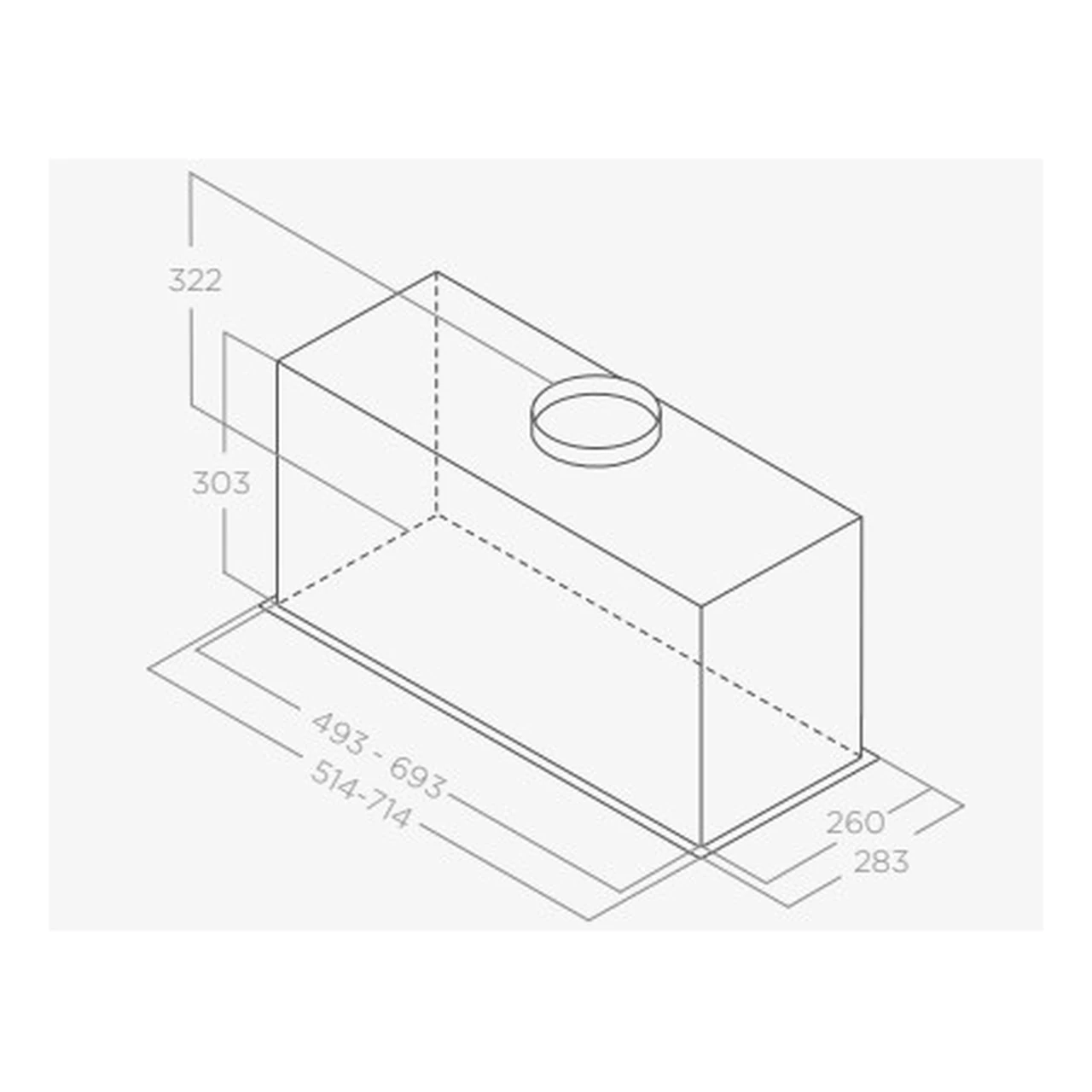 • Integreeritav disain 60 cm kapile – õhupuhasti paigaldatakse ülakappi, nähtav osa on u 52 cm lai, mis jätab köögi visuaalselt ühtlaseks ja sobib hästi modernsetesse köökidesse.