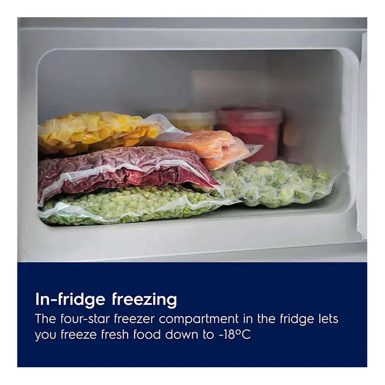 Külmik kasutab staatilist jahutust, mis sobib igapäevaseks toidukraami hoiustamiseks. Nelja tärni sügavkülmisahtel külmiku sees sobib väiksema koguse külmutatud toidu jaoks, näiteks jääkuubikute, marjade või valmisroogade hoidmiseks. OptiSpace lahendus võimaldab riiuleid ja sahtleid ümber tõsta, et luua kõrgematele pottidele ja pudelitele rohkem ruumi ning vajadusel sahtleid täielikult eemaldada.
