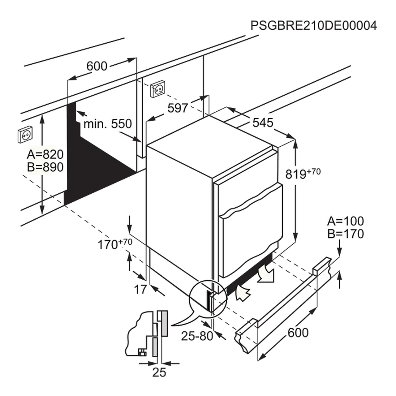 Electrolux LFB3AE82R on mõeldud integreeritavaks paigalduseks 60 cm laiusesse nišši, mistõttu sobib see töötasapinna või pliidi alla enamikesse standardsetesse köögimööbli süsteemidesse. Enne ostu tasub üle mõõta kapisügavus, -laius ja -kõrgus ning veenduda, et mööbli ukse kinnitusviis oleks sobiv uks-uksele paigalduse jaoks. Ust saab ümber tõsta, mis lihtsustab seadme sobitamist nii nurka kui ka sirgele köögiseinale.