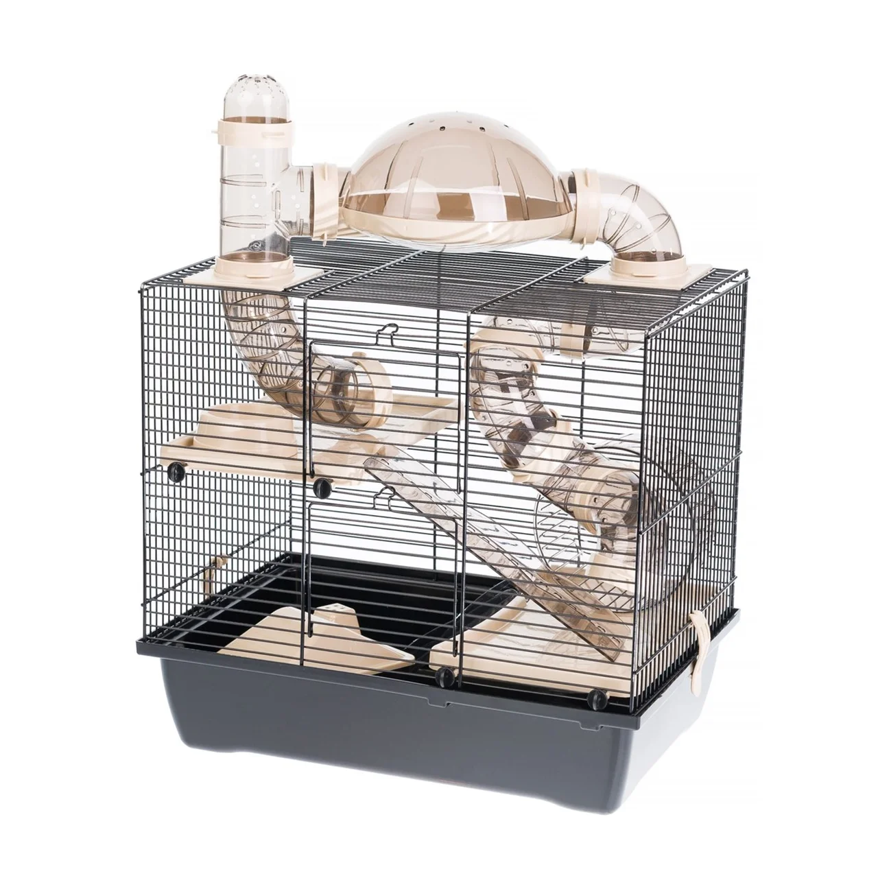 INTER-ZOO Rocky + Terrace beež on moodne kahe tasandiga hamstripuur tunnelite süsteemi ja igapäevaste tarvikutega, mis on loodud pakkuma teie väikeloomale ohutut, mugavat ja stimuleerivat elukeskkonda. See puur sobib hamstritele ja väiksematele närilistele ning sobitub hästi nii väiksematesse kui ka suurematesse eluruumidesse. Toode on valmistatud vastupidavast metallist ja plastist, tagades pikaajalise kasutuse ja lihtsa hoolduse.