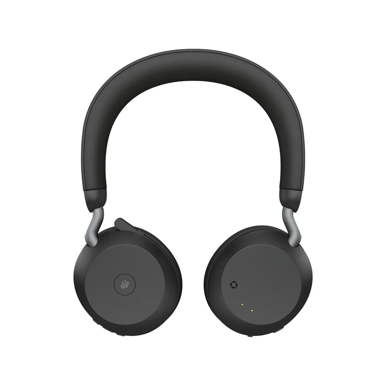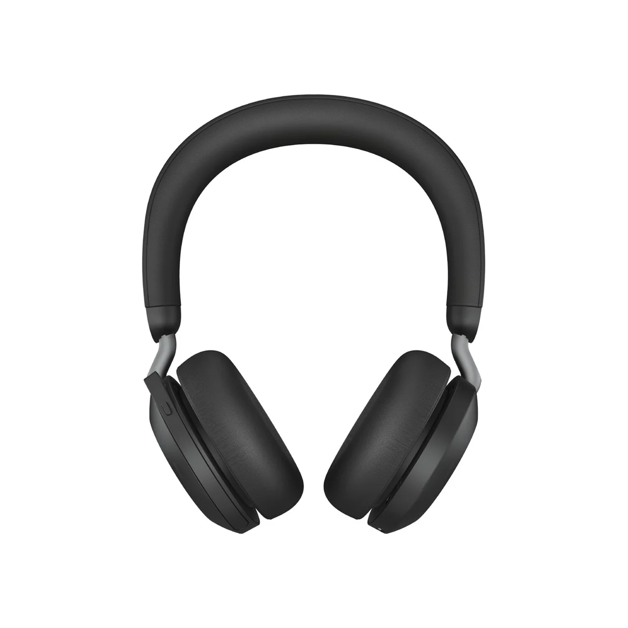 Jabra Evolve2 75 must juhtmevaba binauraalne tööpeakomplekt tagab selge kõnekvaliteedi ja mugava kandmise kogu tööpäeva vältel.