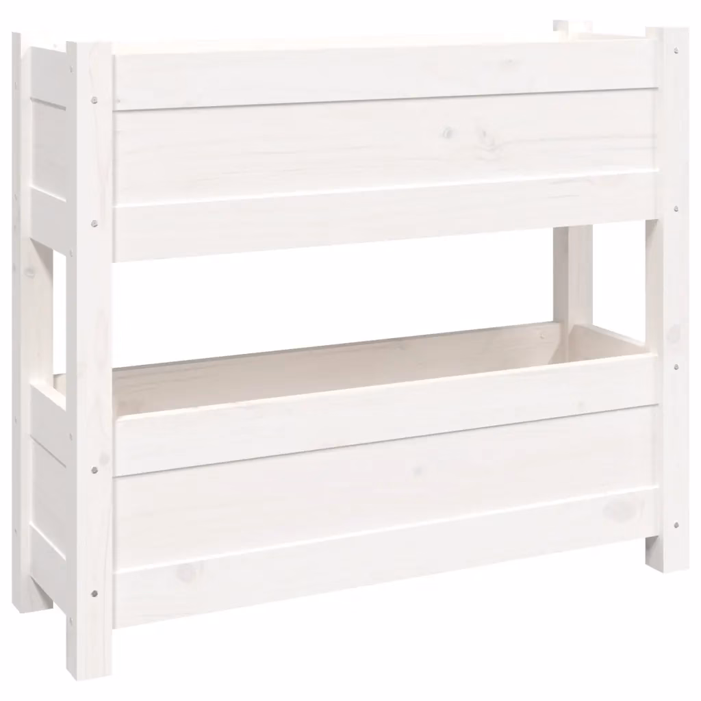 See valge männipuidust taimekast on praktiline lahendus, kui soovid tuua rohkem rohelust oma eluruumi, rõdule või verandale. Kahel tasapinnal paiknevad kastid pakuvad rohkem istutusruumi väiksel pinnal ning aitavad hoida taimed korrastatult ja kergesti hooldatavana. Loodusliku välimusega männipuit lisab interjöörile ja välialale maalähedast ilmet.