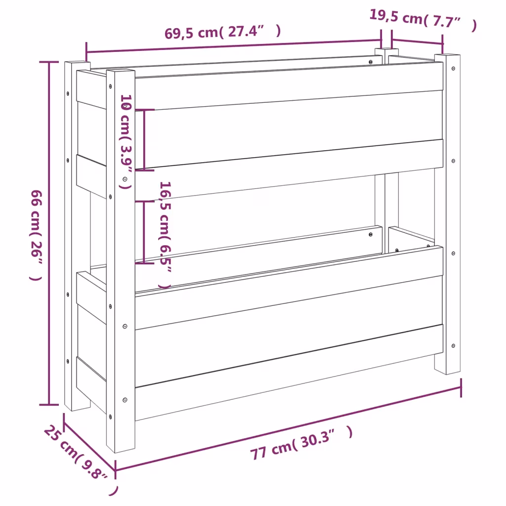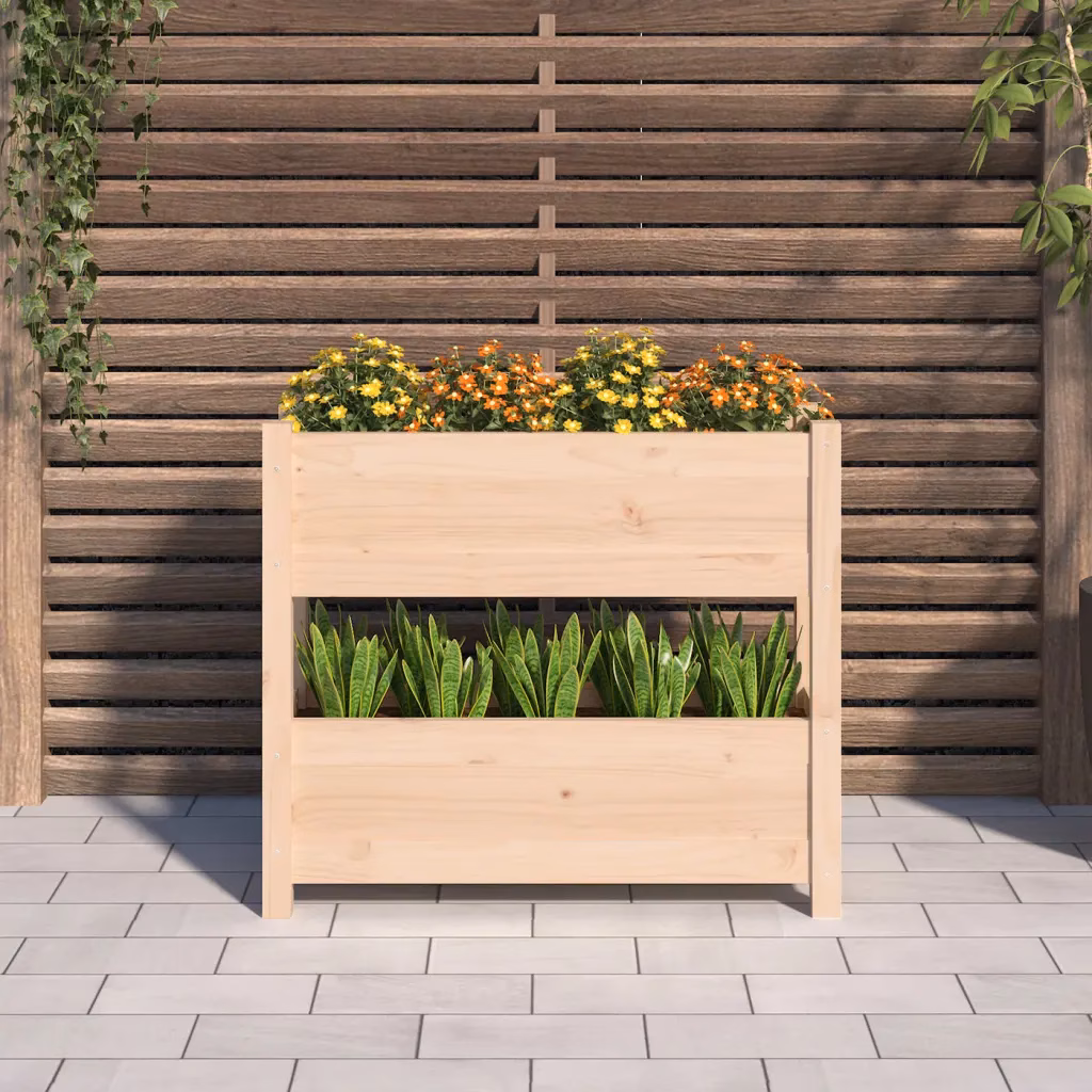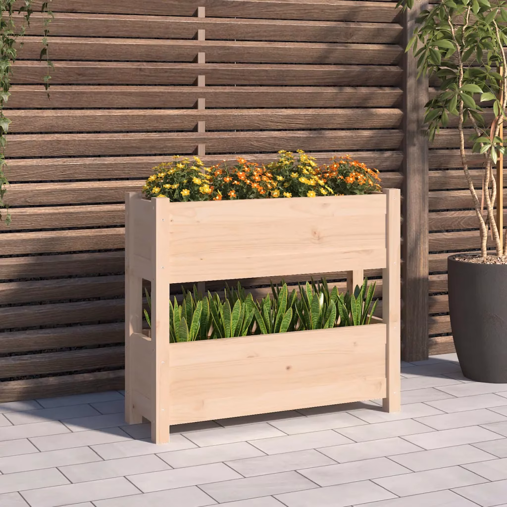 Kui otsite kompaktset ja funktsionaalset istutuslahendust sise- või väliruumidesse, pakub see kahetasandiline männipuidust taimekast piisavalt ruumi taimede kasvatamiseks ning lisab keskkonnale loomulikku puidust ilmet.