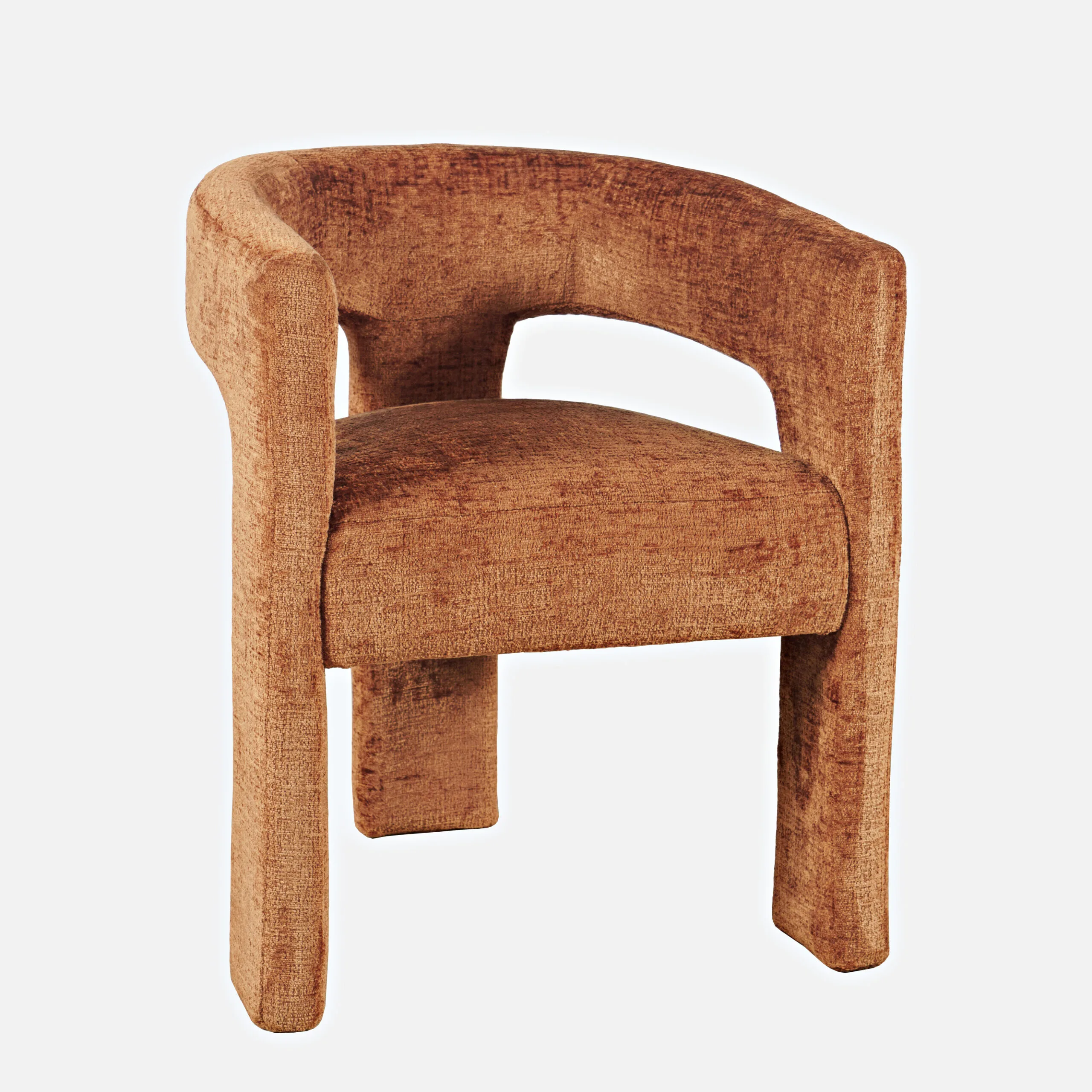 Leith LET71C polsterdatud tool söögituppa. See elegantne kaneelitooni polsterdatud tool on valmistatud kõrgeima kvaliteediga chenille-kangast. Mööbli lihtne vorm, mis põhineb moekatel ümardatud kujunditel, toob igasse söögituppa luksuslikkust ja stiili.