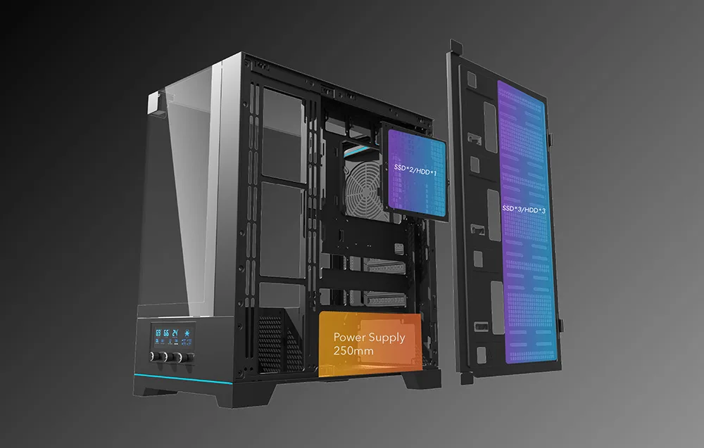 Darkflash DY450 võimaldab mitmekülgseid jahutusvõimalusi – selles saab paigaldada kuni 8 ventilaatrit (ei kuulu komplekti). Lisaks toetab karastatud klaas arvutikorpus erineva suurusega veejahutussüsteeme, kuni 480 mm radiaator külgpaneelil. See tagab komponentide töökindla jahutuse intensiivsel kasutusel ja mängudes.