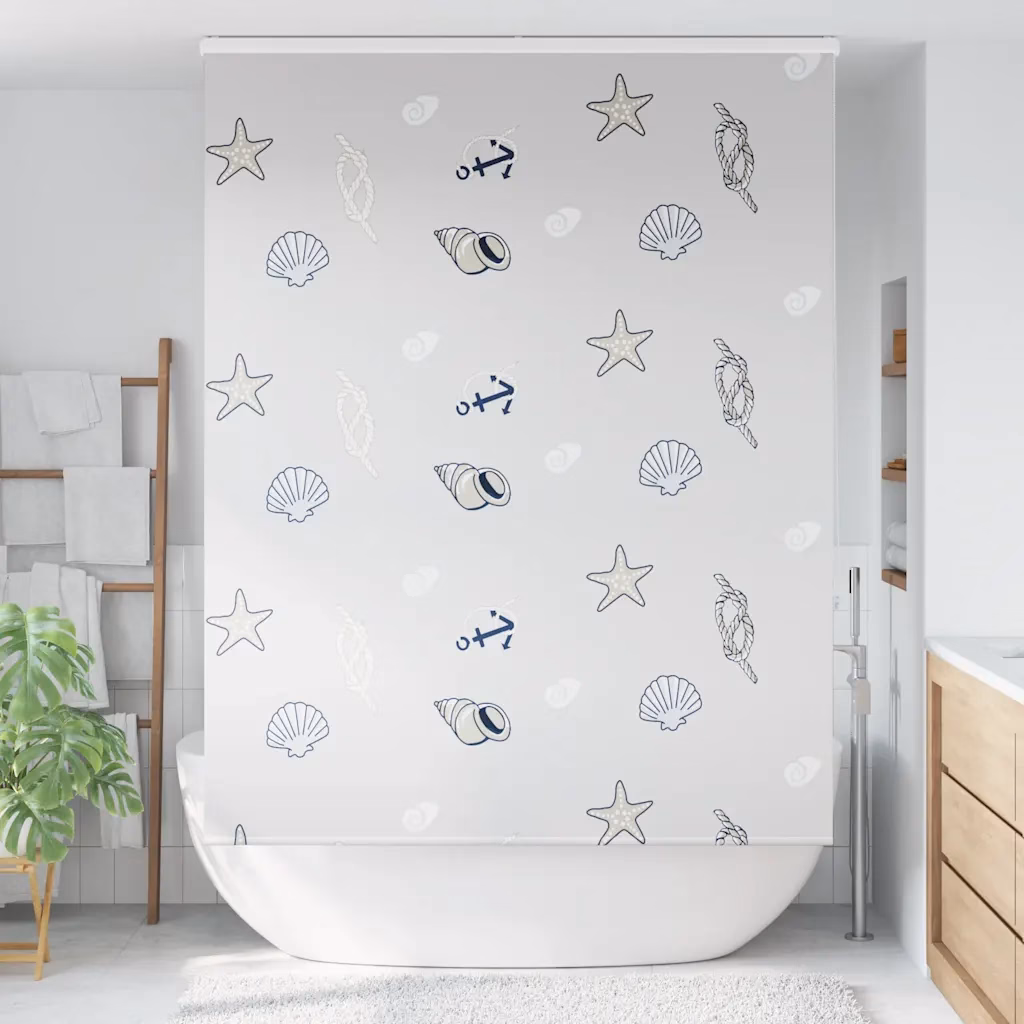 See duširuloo sobib, kui soovite kombineerida privaatsust, ruumisäästu ja lihtsat hooldust ühes lahenduses. Meretähe mustriga veekindel PEVA-kangas, alumiiniumsiin, kassettsüsteem ning reguleeritav ketiühendus teevad sellest praktilise valiku nii pere- kui ka väiksema vannitoa jaoks.