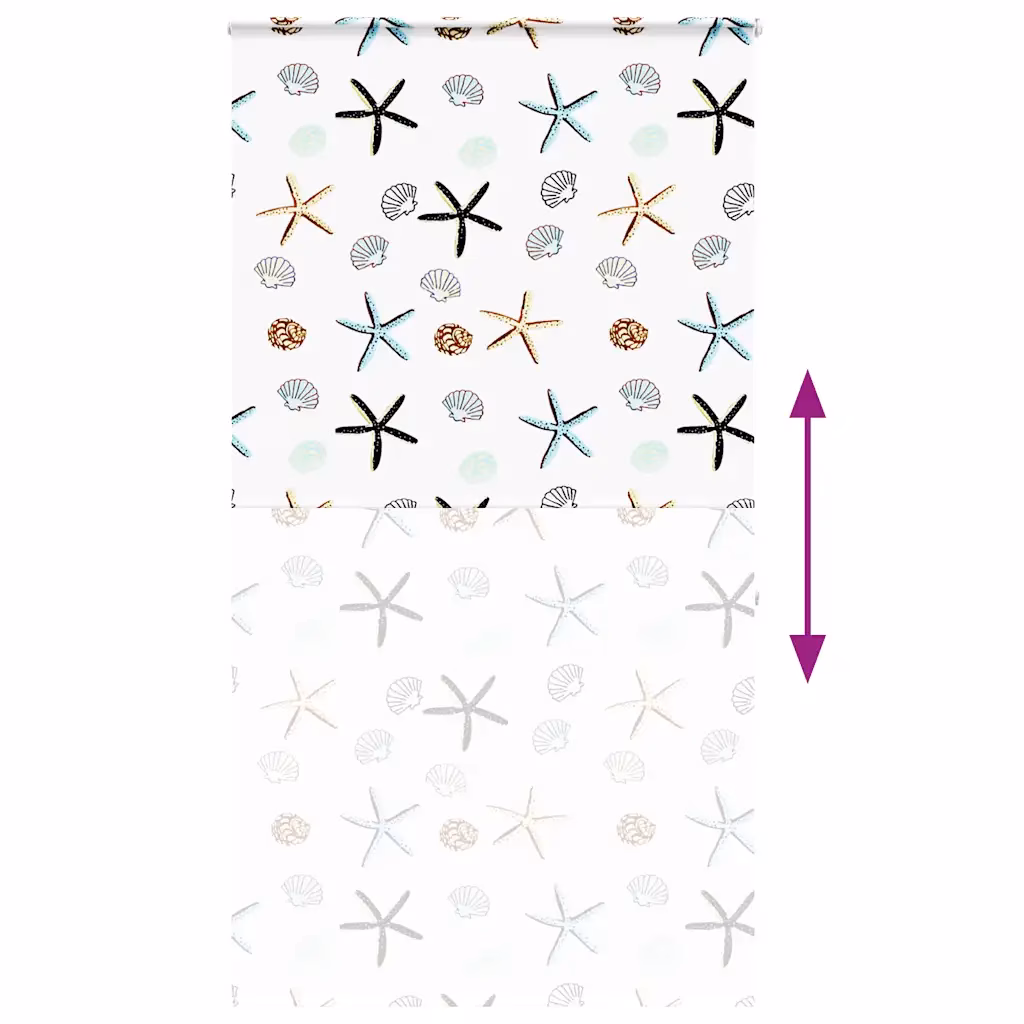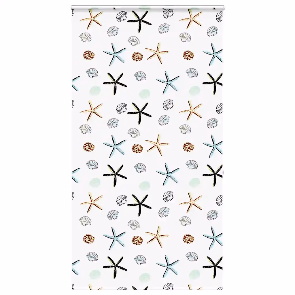 - Meremuster meritähtede ja karpidega – mitmevärviline disain sobib hästi mere- või ranna stiilis vannituppa ja elavdab heledat interjööri.