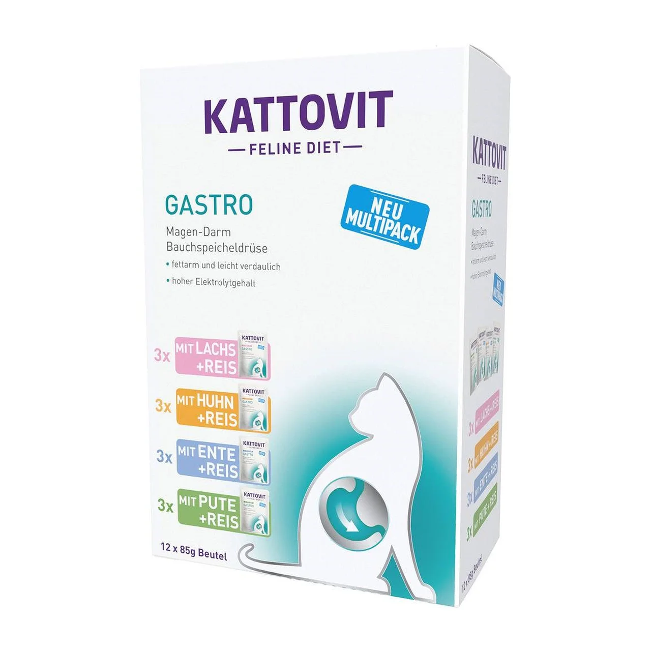 KATTOVIT Feline Diet Gastro märgtoit kassidele – 12 x 85g gluteenivaba veterinaarne multipakk