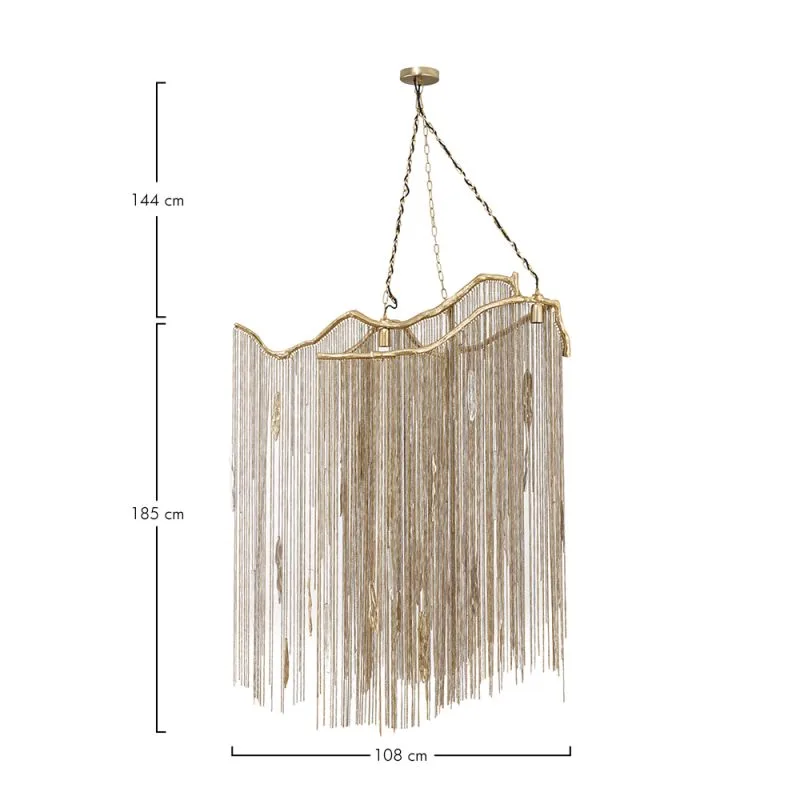Oma unikaalse disaini ning 185 cm kõrguse tõttu sobib see ketiga rippvalgusti suurepäraselt nii elutuppa, söögilaua kohale kui ka magamistuppa. 108 cm pikkune ja 44 cm laiune valgusti tagab ruumis suurepärase valgusjaotuse, tuues esile interjööri parimad omadused.
