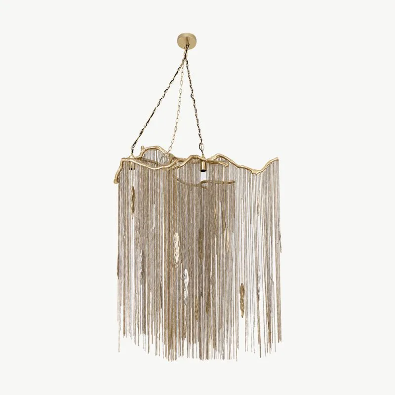 Kui otsid vastupidavat ja ajatut ketiga rippvalgustit, mis lisab ruumile elegantse ja luksusliku ilme, siis see messingist metallist valgusti on suurepärane valik.
