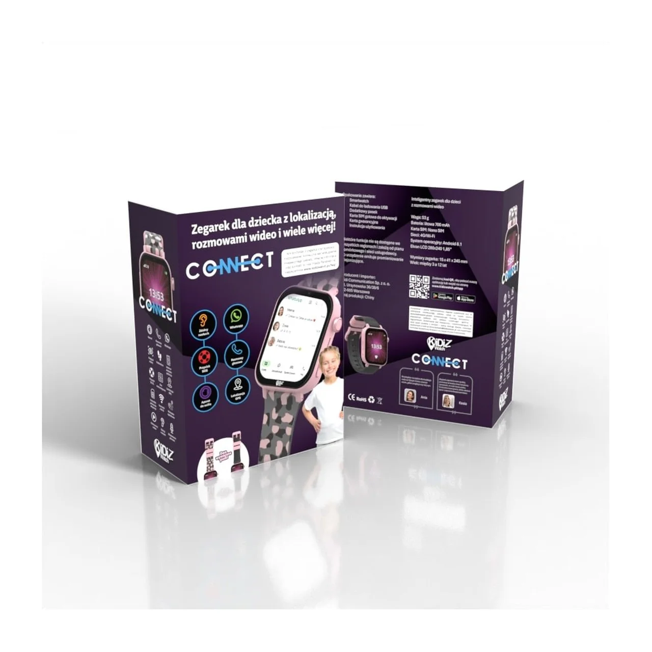 KiDiZ Connect pink smartwatch for children pakub usaldusväärset võimalust hoida oma last paremini silma all ning toetab iseseisvuse arengut. See veekindel laste nutikell ühendab GPS-jälgimise, 4G-kõned, sõnumid, turvafunktsioonid ja igapäevased rakendused. Silmatorkava mustrilise silikoonrihmaga stiilne nutikell sobib nii kooli, huviringi kui ka pere väljasõitudeks.
