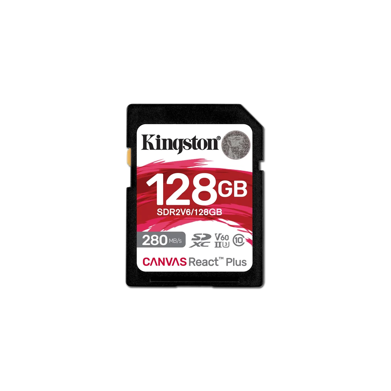 Kingston Canvas React Plus SDR2V6/128GB 128GB SDXC UHS-II V60 U3 mälukaart, kuni 280 MB/s lugemine, 100 MB/s kirjutamine