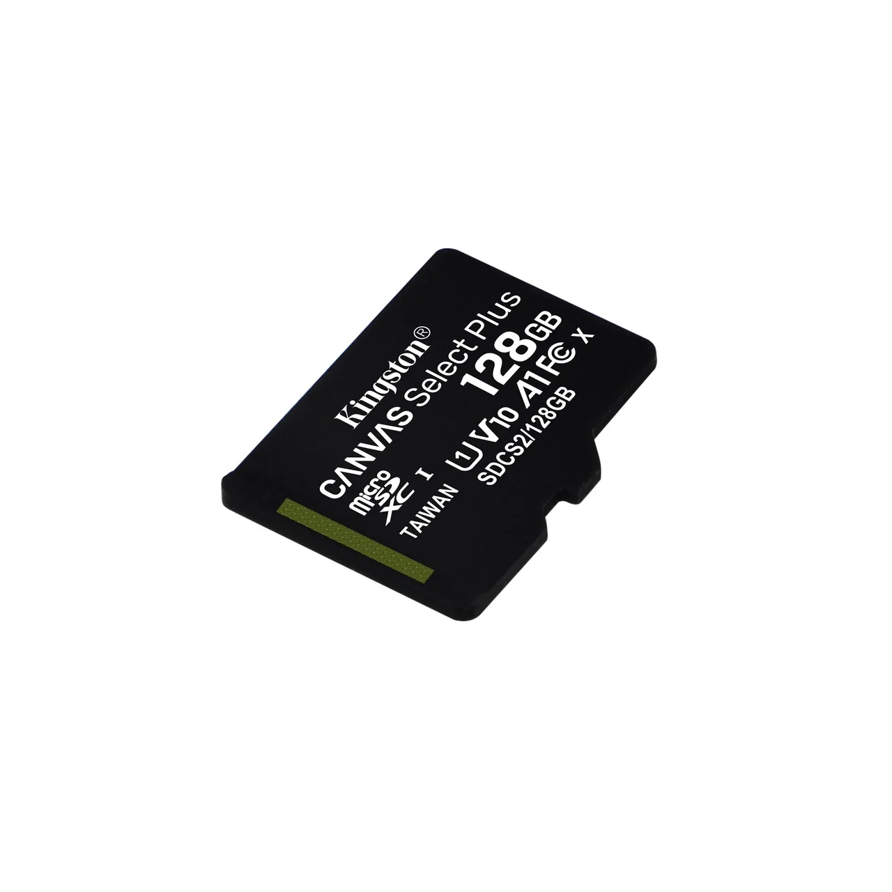 Kingston Canvas Select Plus SDCS2/128GB 128GB microSDXC mälukaart, 100MB/s, Class 10 UHS-I U1 V10, A1, must, SD-adapteriga, Android seadmetele