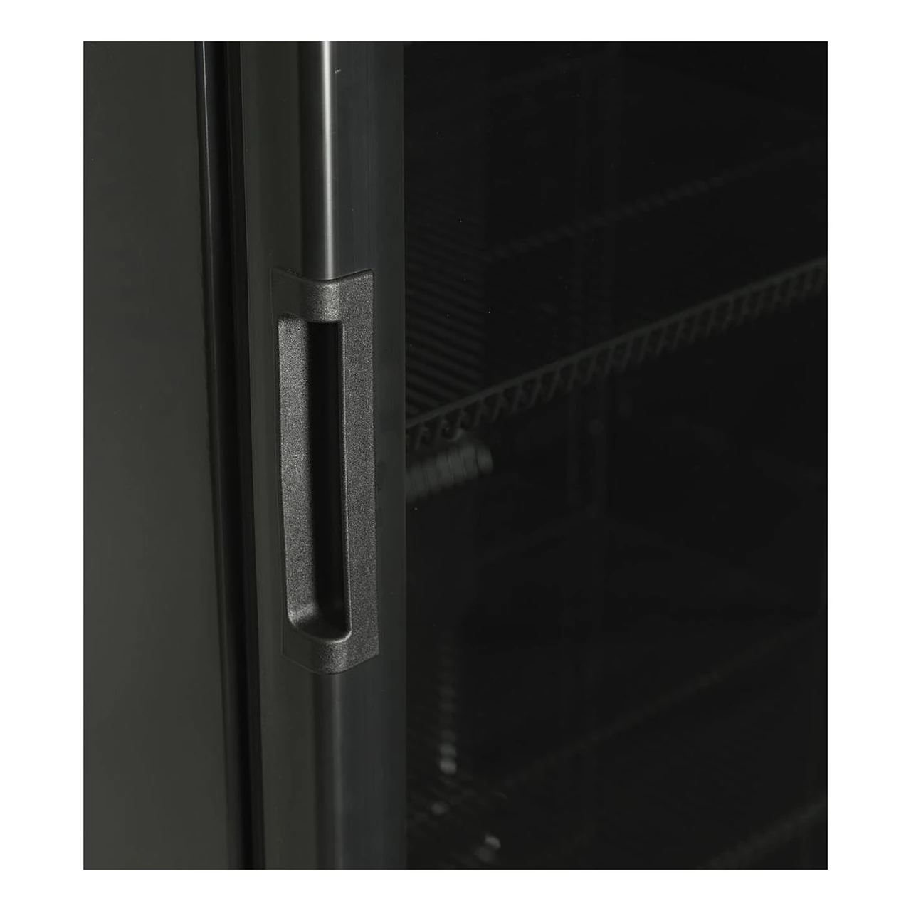See mudel sobib siis, kui otsid klaasuksega vitriinkülmikut, mis ühendab esitlemis- ja jahutusfunktsiooni ühes seadmes. 320 liitrine maht, statiline jahutus koos ventilaatoriga, LED-valgustus ja must disain teevad sellest praktilise lahenduse jookide ja pakendatud toidu müügisaali jaoks.