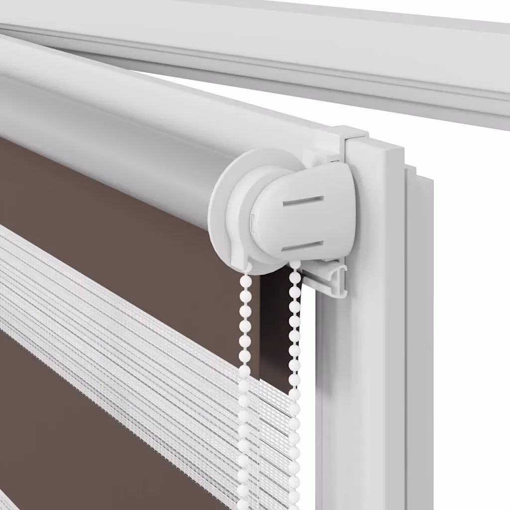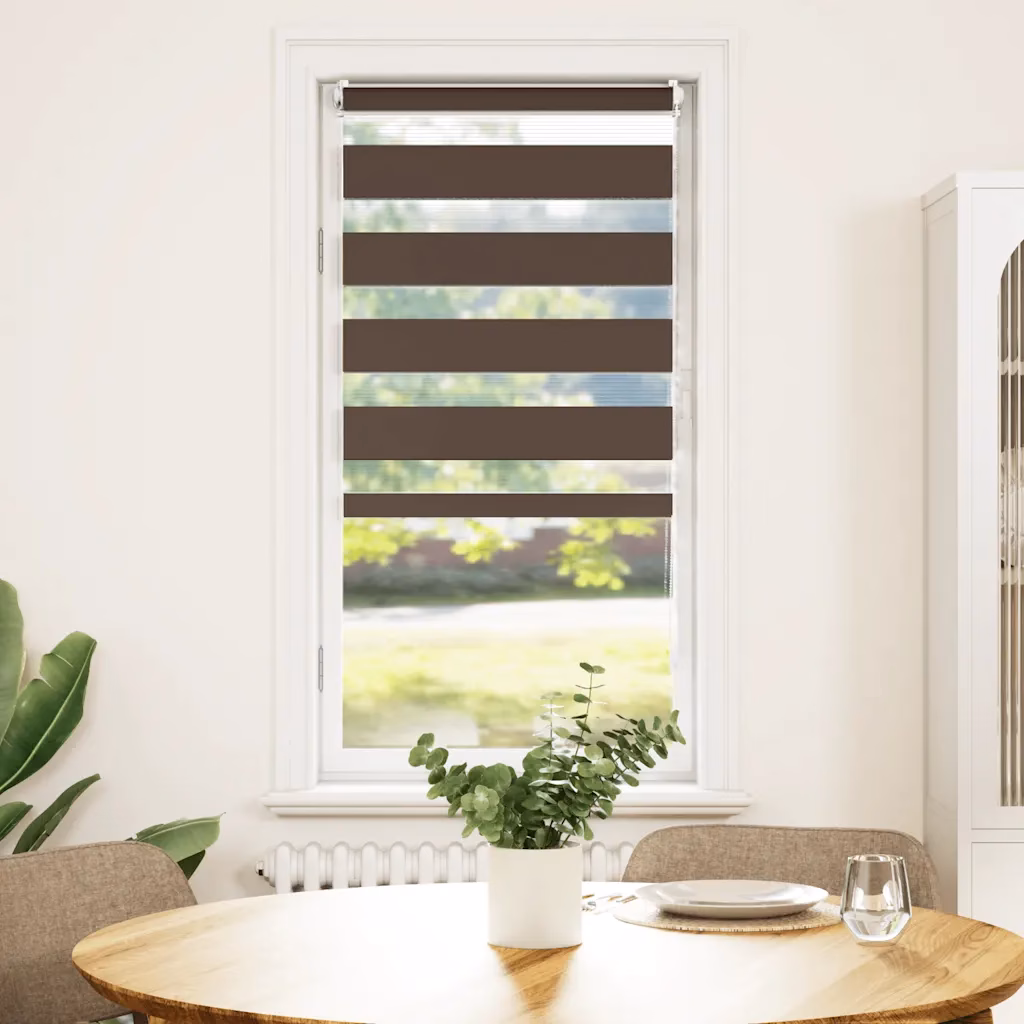 Kohvivärvi sebraruloo on praktiline lahendus, kui soovid akna ette katet, mis laseb valgust sisse, kuid tagab samal ajal privaatsuse. Kahe paralleelse kanga vahelduvad läbipaistvad ja läbipaistmatud triibud võimaldavad ketti liigutades muuta ruumi valgusastet vastavalt vajadusele. Kompaktne 40 x 100 cm suurus sobib hästi väiksematele akendele kaasaegses interjööris.