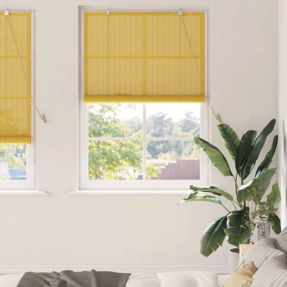 Privaatsus ja valguse reguleerimine kollase bambusest rulookardinaga