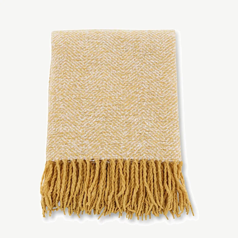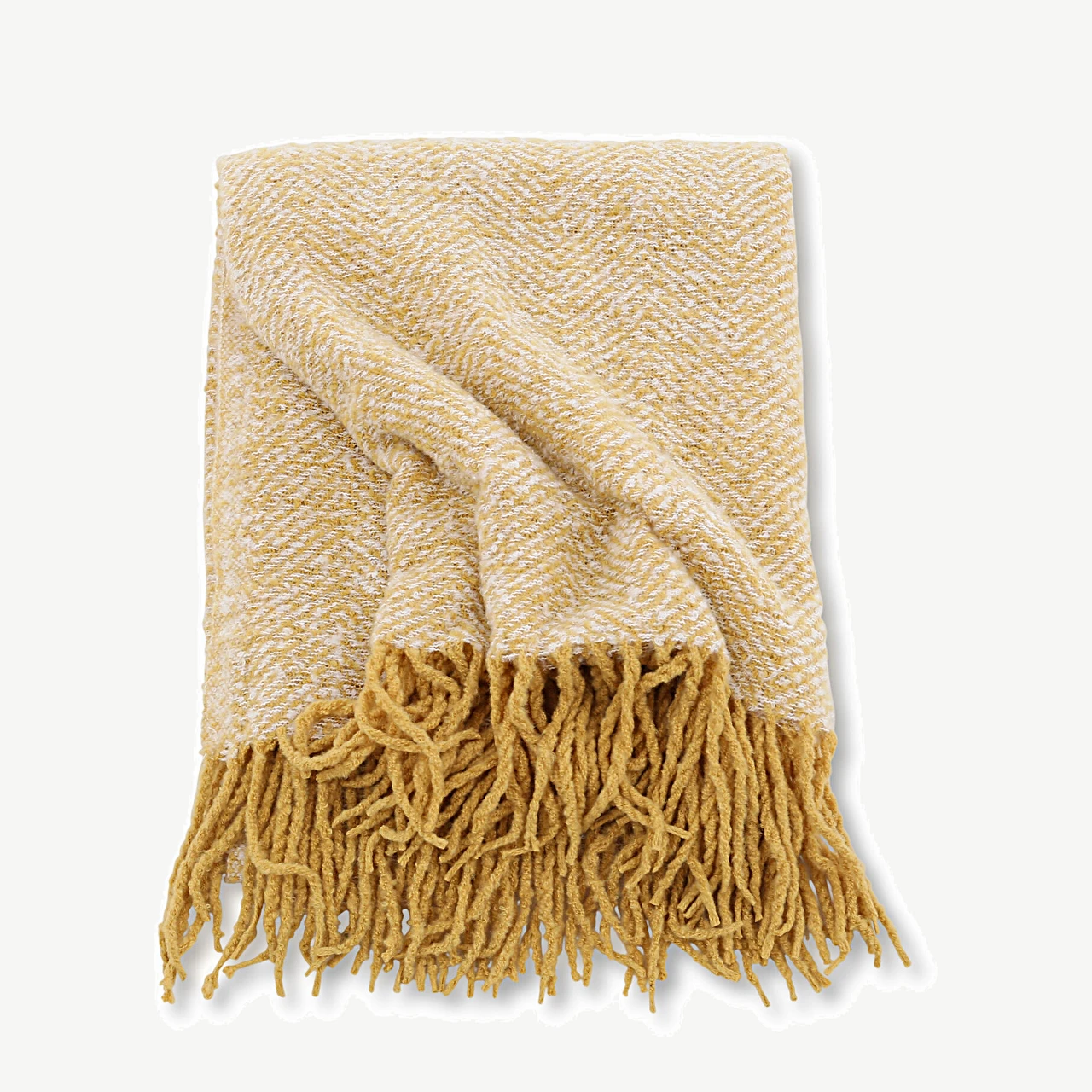 Kollane kalasabamustriga pleed Toby – soe ja stiilne aktsent Sinu koju