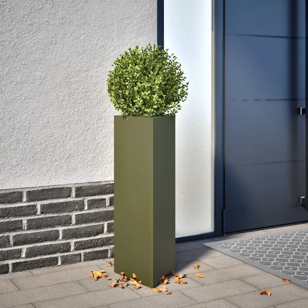 Kui soovite ruumisäästlikku ja vastupidavat lahendust taimede paigutamiseks, pakub see kolmnurksete taimekastide komplekt hea kombinatsiooni funktsionaalsusest ja lihtsast vormist. Terasest konstruktsioon ja sügav istutusruum toetavad taimede tervislikku kasvu ning ühtne oliiviroheline viimistlus sobitub hõlpsasti erinevate väliruumide stiiliga.