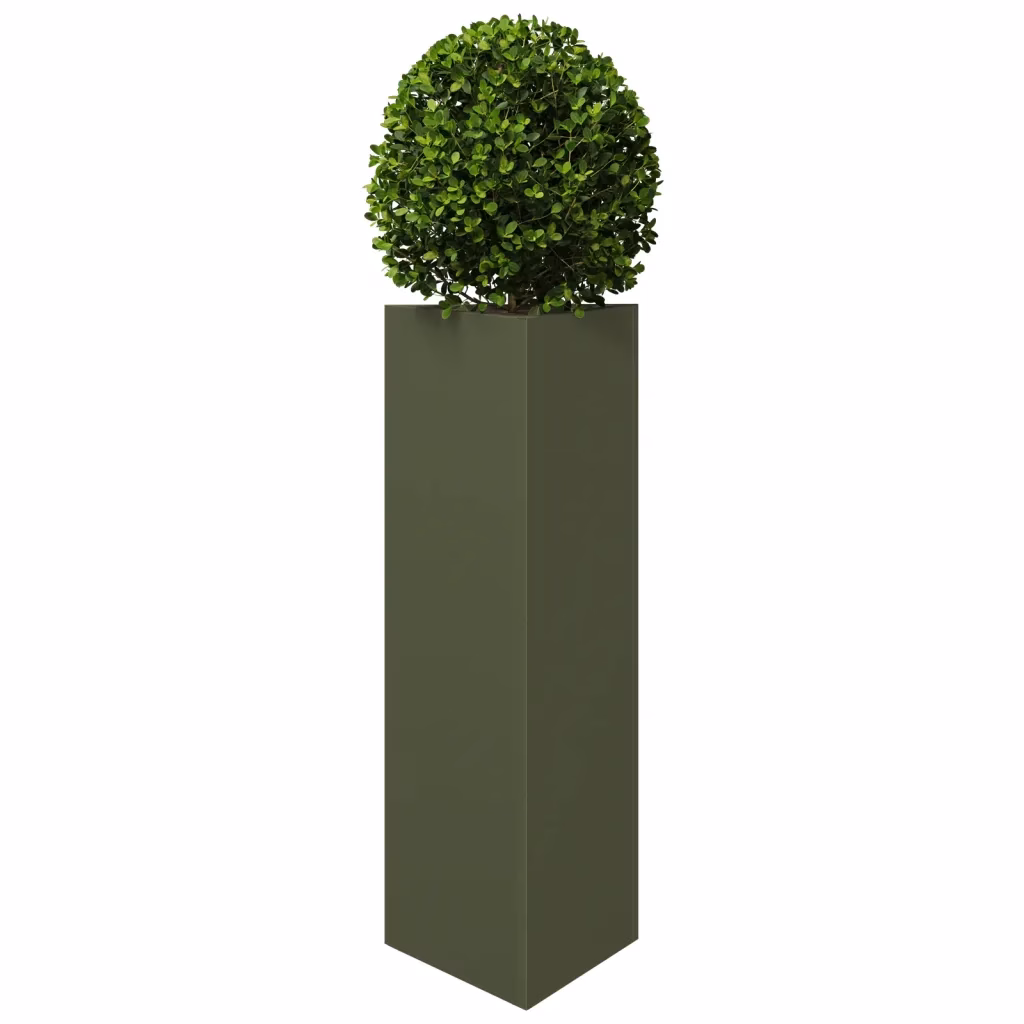 • 2 oliivirohelist terasest aia taimekasti põhjaga, mõõtmetega 30 x 26 x 75 cm (pikkus x laius x kõrgus)