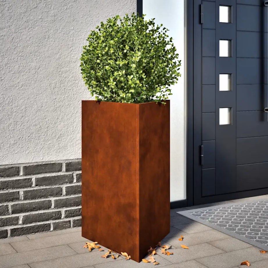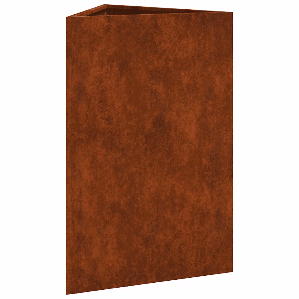 Kui otsite lahendust, mis ühendab vastupidavuse, vähese hooldusvajaduse ja eristuva välimuse, on need ilmastikukindlast terasest taimekastid hea valik. Sügav ja põhjaga disain toetab taimede tervislikku kasvu, kolmnurkne kuju aitab ruumi tõhusalt kasutada ning aja jooksul kujunev pruun roostevärv lisab aiale, rõdule või terrassile iseloomuliku ja ajas muutuvate varjunditega ilme.