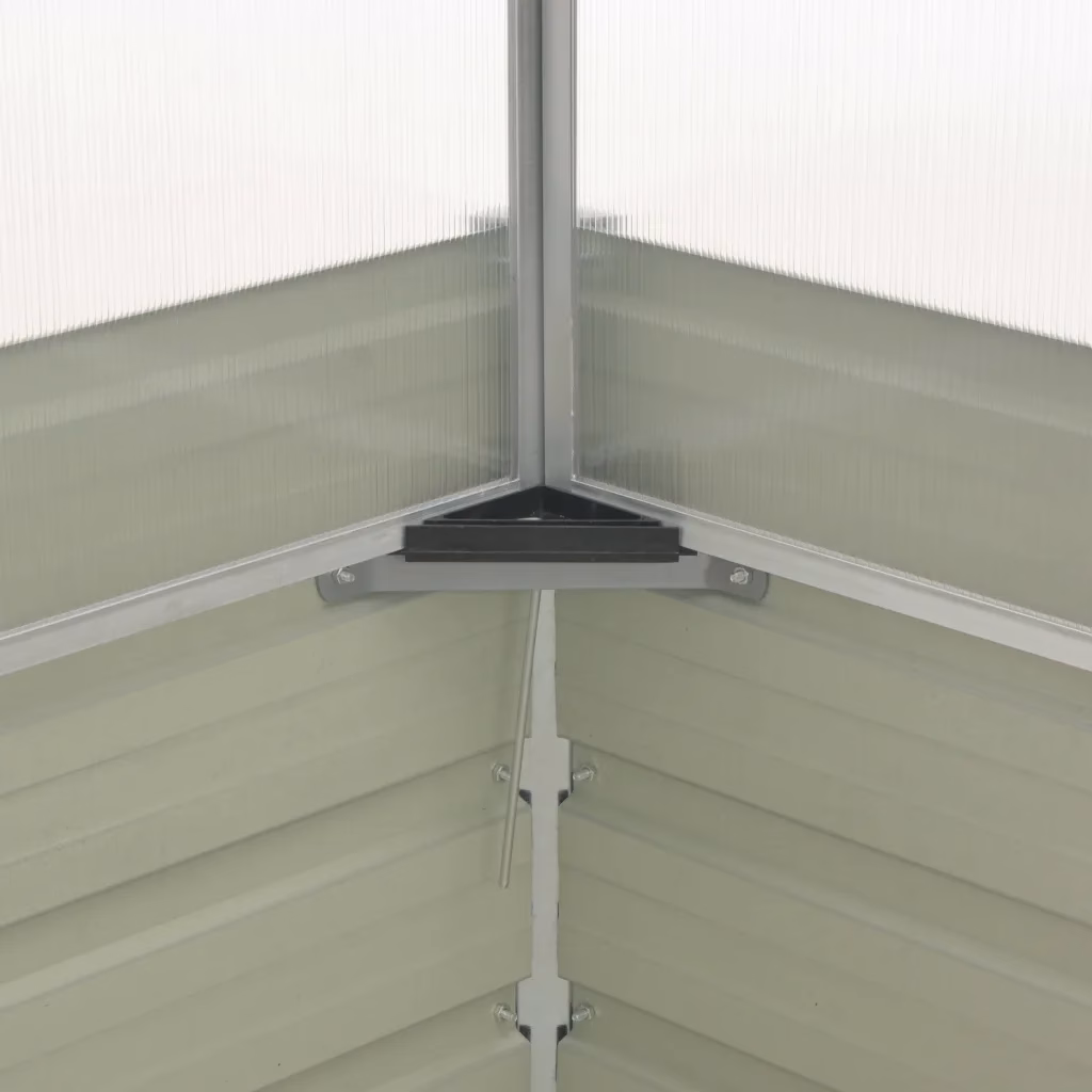 Alumiiniumraamiga PC-plaadist katus hoiab soojust ning laseb valguse ühtlaselt läbi, samas kui tsingitud terasest alus on vastupidav ja ilmastikukindel. Avatud põhja ja avatava pealisega konstruktsioon tagab hea drenaaži, õhuringluse ja mugava ligipääsu taimedele.