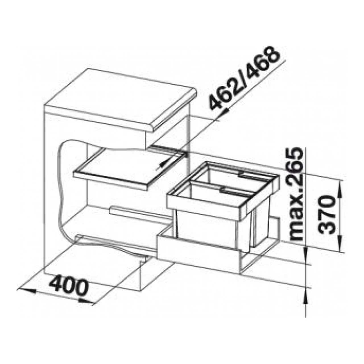 - Süsteem liigub koos olemasoleva väljatõmmatava sahtliga, mis võimaldab jäätmetele kiiret juurdepääsu ilma kapi ust eraldi avamata.