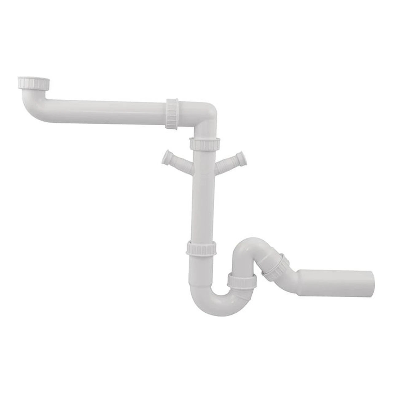 BLANCO köögivalamu sifoon 1 1/2″ ühendusega ja 50 mm väljavooluga on mõeldud standardsetele köögivalamutele, kus valamu alla paigaldatakse ka jäätmete sorteerimissüsteem. Eriline konstruktsioon aitab suunata torud seina poole, vähendades kanalisatsioonitorude ruumivajadust ning luues kapis rohkem vaba pinda prügikastidele ja sorteerimiskonteineritele.