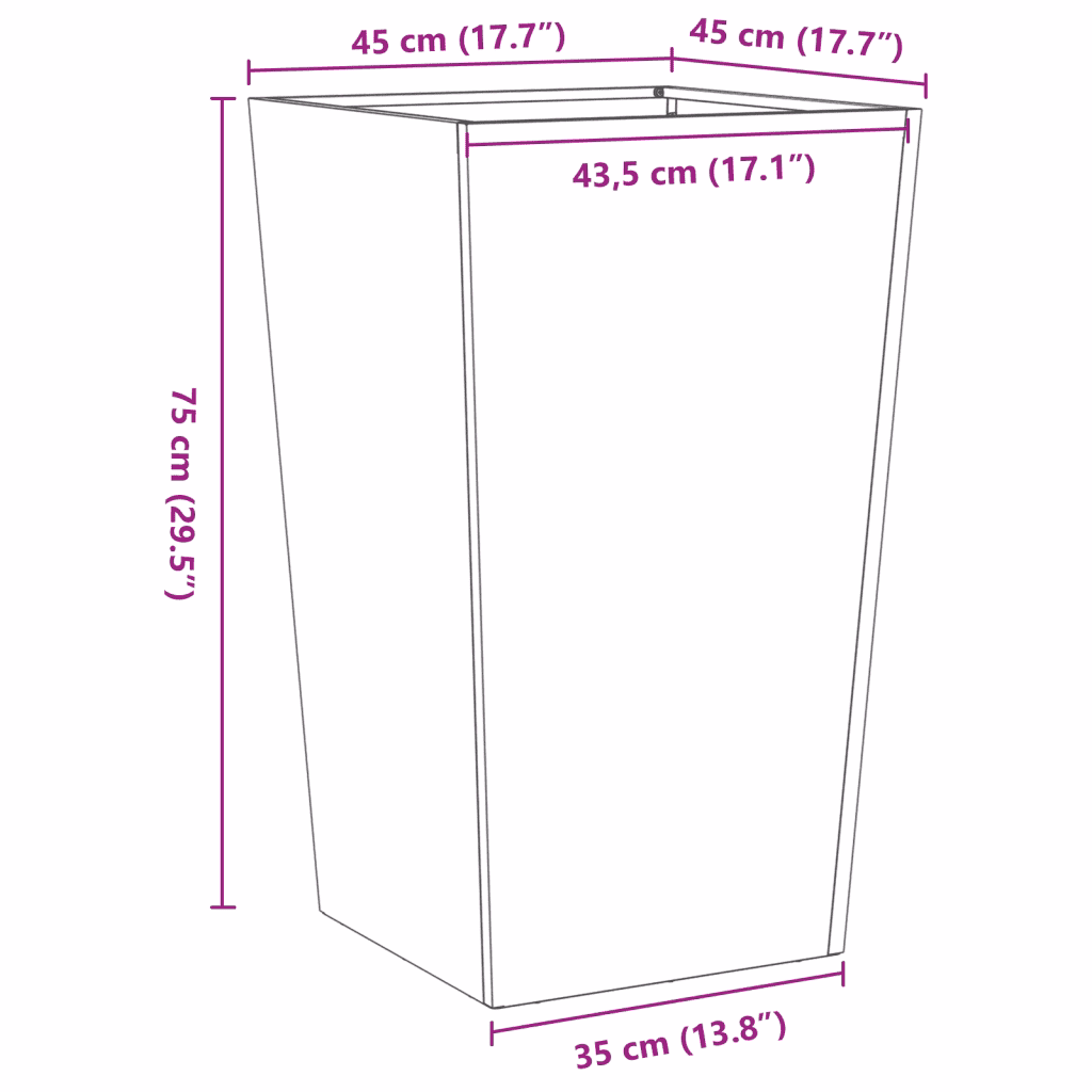 See kõrge roostevabast terasest taimekast põhjaga aitab luua korrastatud ja esindusliku istutusala aias, rõdul või terrassil. Tänu ruumikale vormile mahutab taimekast palju mulda ja sobib nii lillede, ürtide kui ka köögiviljade kasvatamiseks, pakkudes ühtlasi taimedele kaitset maapinnal leviva umbrohu ja kahjurite eest.