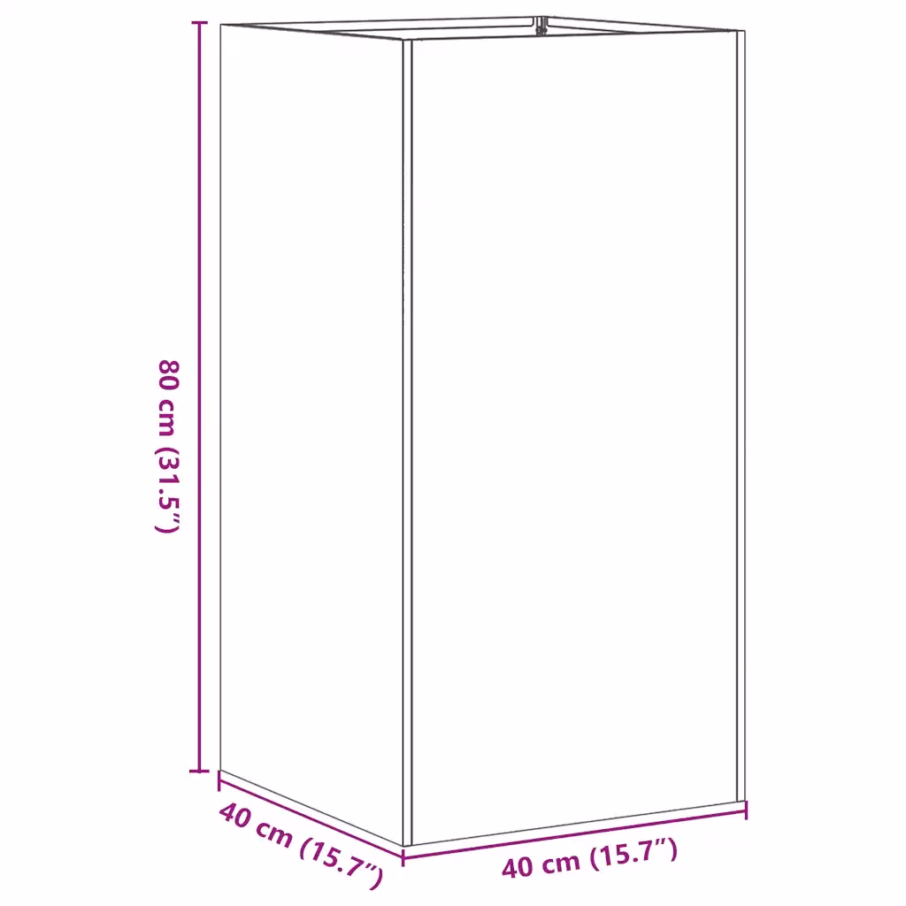 See kõrge taimekast ilmastikukindlast terasest loob taimedele, ürtidele ja õitele sobiva kasvukeskkonna ning lisab aiale, rõdule või terrassile kaasaegse roostes pruuni aktsendi. 40 x 40 x 80 cm mõõt ja avatud põhjaga konstruktsioon pakuvad taimedele sügavat mullakihti ja loomulikku drenaaži.