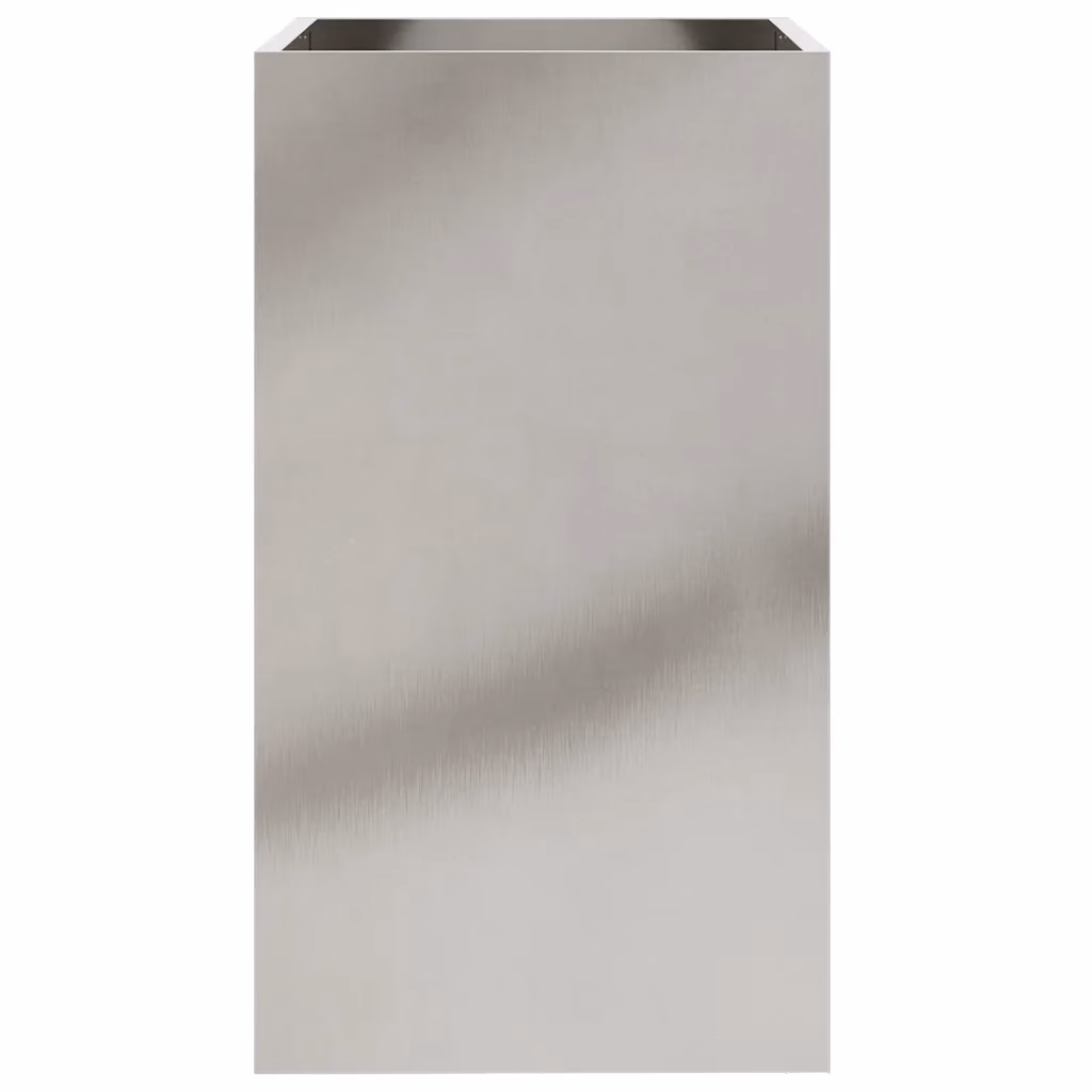See hõbedane roostevabast terasest taimekast aitab luua aeda, rõdule või terrassile selgelt piiritletud istutusala. Kõrgem disain tõstab taimed esile ning muudab roheluse hästi nähtavaks, samas kui korrosioonikindel materjal tagab pika kasutusea ja lihtsa hoolduse.
