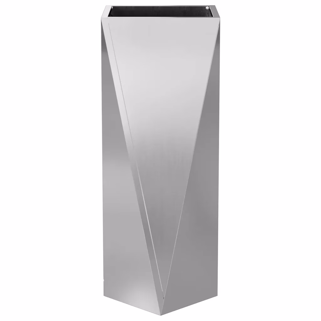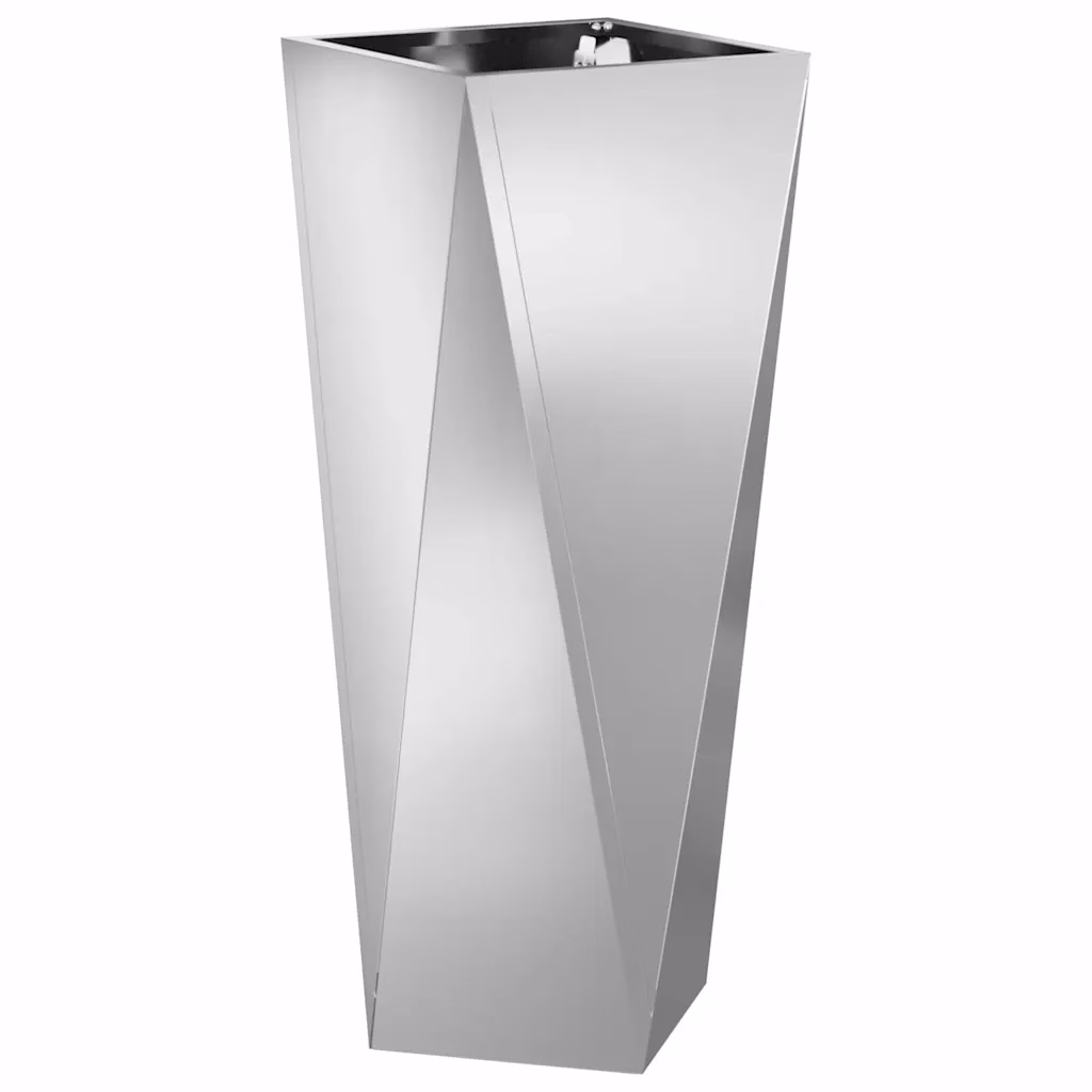 Need kõrged hõbedased taimekastid on praktiline viis tuua rohelust sissepääsu juurde, terrassile või aianurka. Tsingitud terasest konstruktsioon tagab vastupidavuse välistingimustes, samas kui saleda koonusja vormiga kastid loovad kaasaegse ja esindusliku ilme igale hoonele.