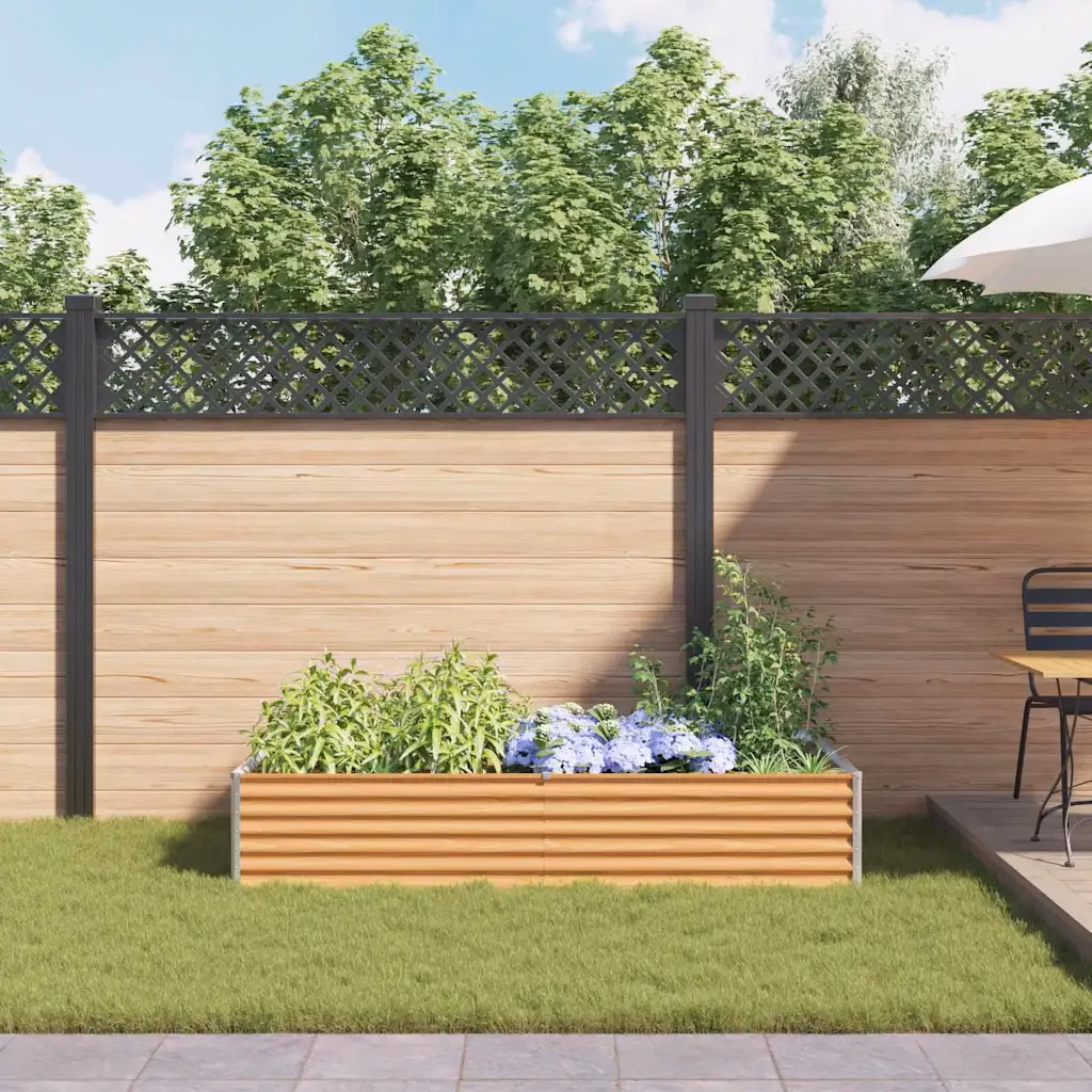 Kui soovid luua selgepiirilise ja hästi kuivendatud peenra, on see tsingitud terasest kõrgendatud aiakast praktiline lahendus. Vastupidav konstruktsioon ja moodne helepruun viimistlus sobivad erineva stiiliga aedadesse ja terrassidele, aidates hoida taimed korrastatult ja hea kasvukeskkonnaga alal.