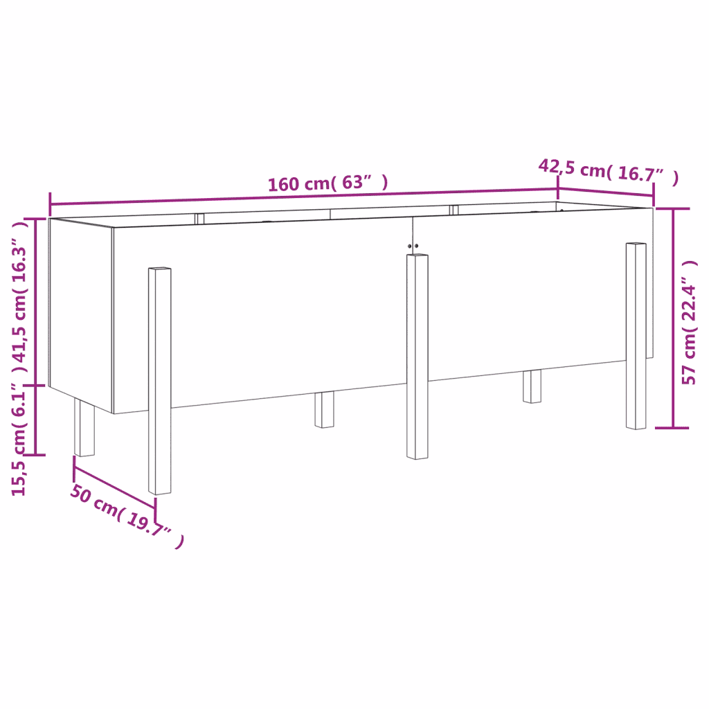 • Praktilised mõõtmed – mõõtmed 160 x 50 x 57 cm (L x S x K) pakuvad tasakaalu ruumikuse ja kompaktsuse vahel, sobides ka kitsamatele välialadele.