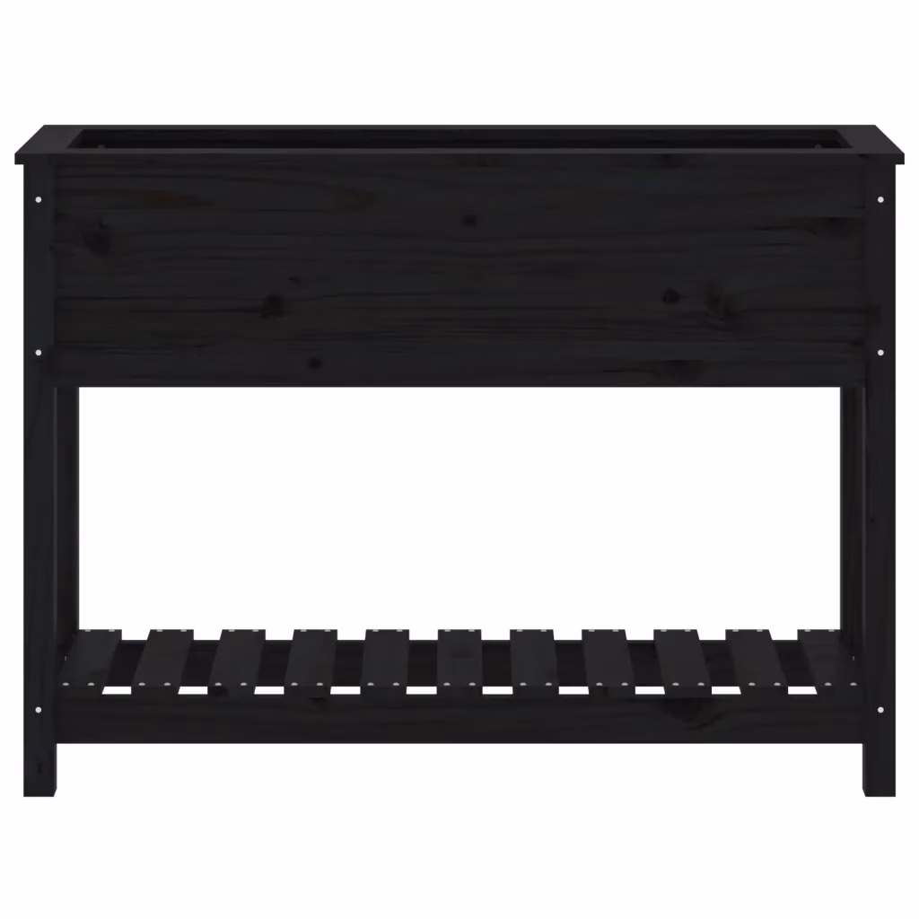 See mustast männipuidust riiuliga taimekast on praktiline lahendus elutoa, rõdu või veranda haljastamiseks. Kõrgendatud konstruktsioon pakub ergonoomilist töökõrgust, mis säästab põlvi ja selga, samal ajal kui sügav kast ja allosas olev riiul loovad rohkem ruumi taimedele ja tarvikutele.