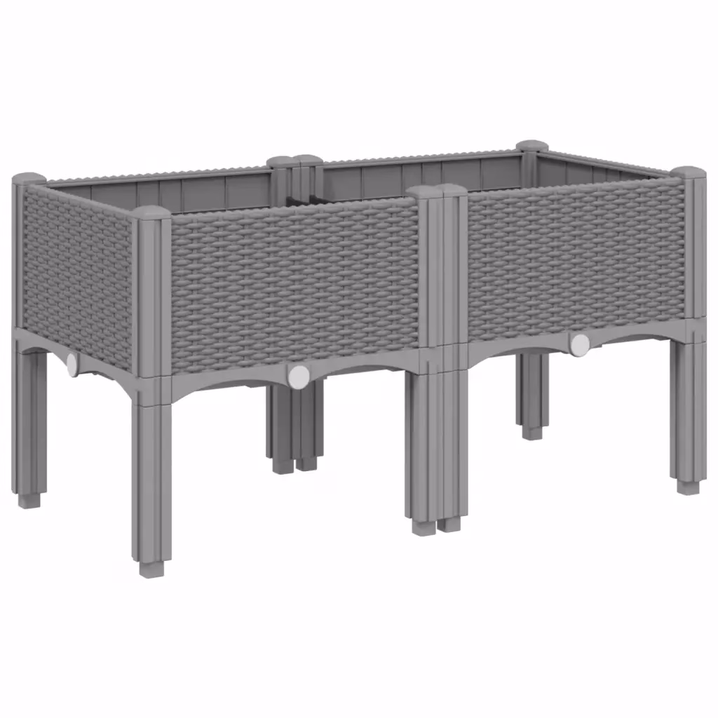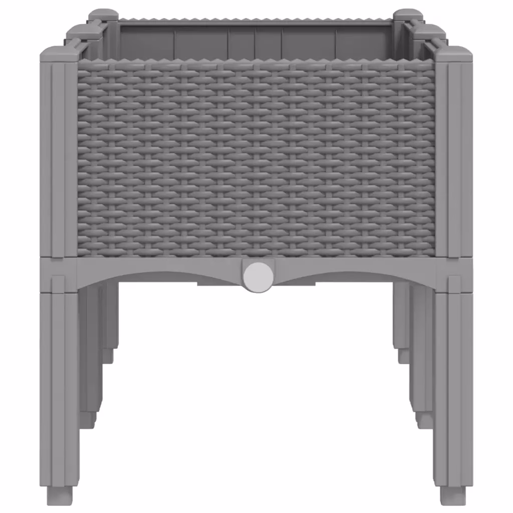 See kõrgendatud taimekast pakub praktilist lahendust, kui soovid taimi kasvatada piiratud pinnal. Ruumikas istutusala sobib köögiviljade ja lillede kasvatamiseks, samal ajal kui jalgadel konstruktsioon teeb hooldustöödeks kummardamise vähem vajalikuks. Helehall rotangimustriga viimistlus sobitub hästi nii rõdule, aeda või terrassile, lisades välialale korrastatud ilme.