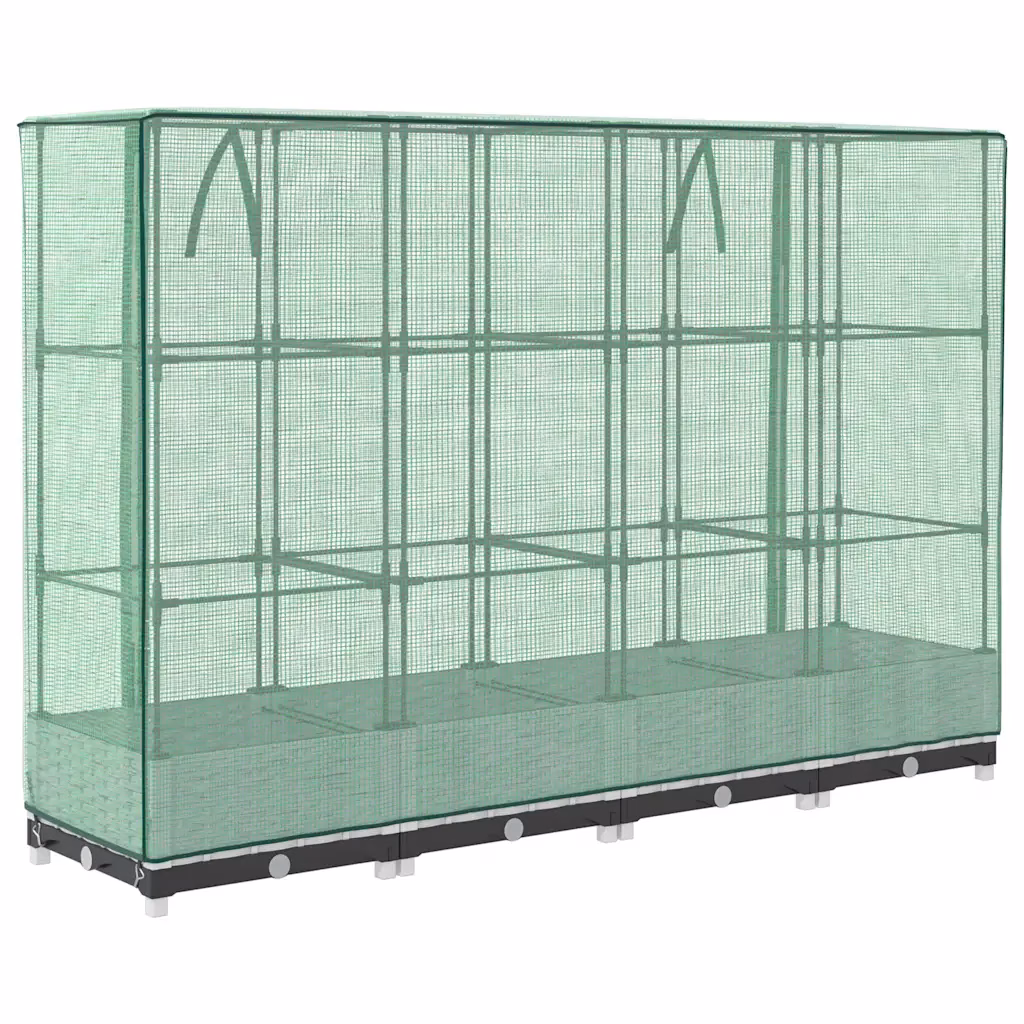See kasvuhoonekattega kõrgendatud taimekast pakub tänu tugevdatud tugiraamile ja ruumikale peenrale palju kasvupinda köögiviljadele, maitsetaimedele ja lilledele. Vettpidav PE kate aitab kaitsta taimi äärmuslike temperatuuride ning kahjurite eest, samal ajal kui rotangiimitatsiooniga valge disain sobitub erinevatesse väliruumidesse alates aedadest kuni rõdude ja siseõuedeni.