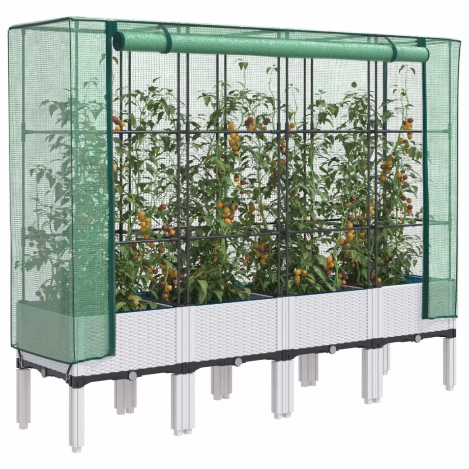 See valge rotangiimitatsiooniga kõrgendatud peenar ühendab dekoratiivse välimuse ja praktilise kaitse, luues taimedele soodsad kasvutingimused. Vettpidav kate ja tugev raam aitavad pikendada kasvatushooaega ning vähendada kahjurikahjustusi, muutes selle heaks valikuks nii algajale kui kogenud aednikule, kes soovib tõhusalt kasutada piiratud välipinda.