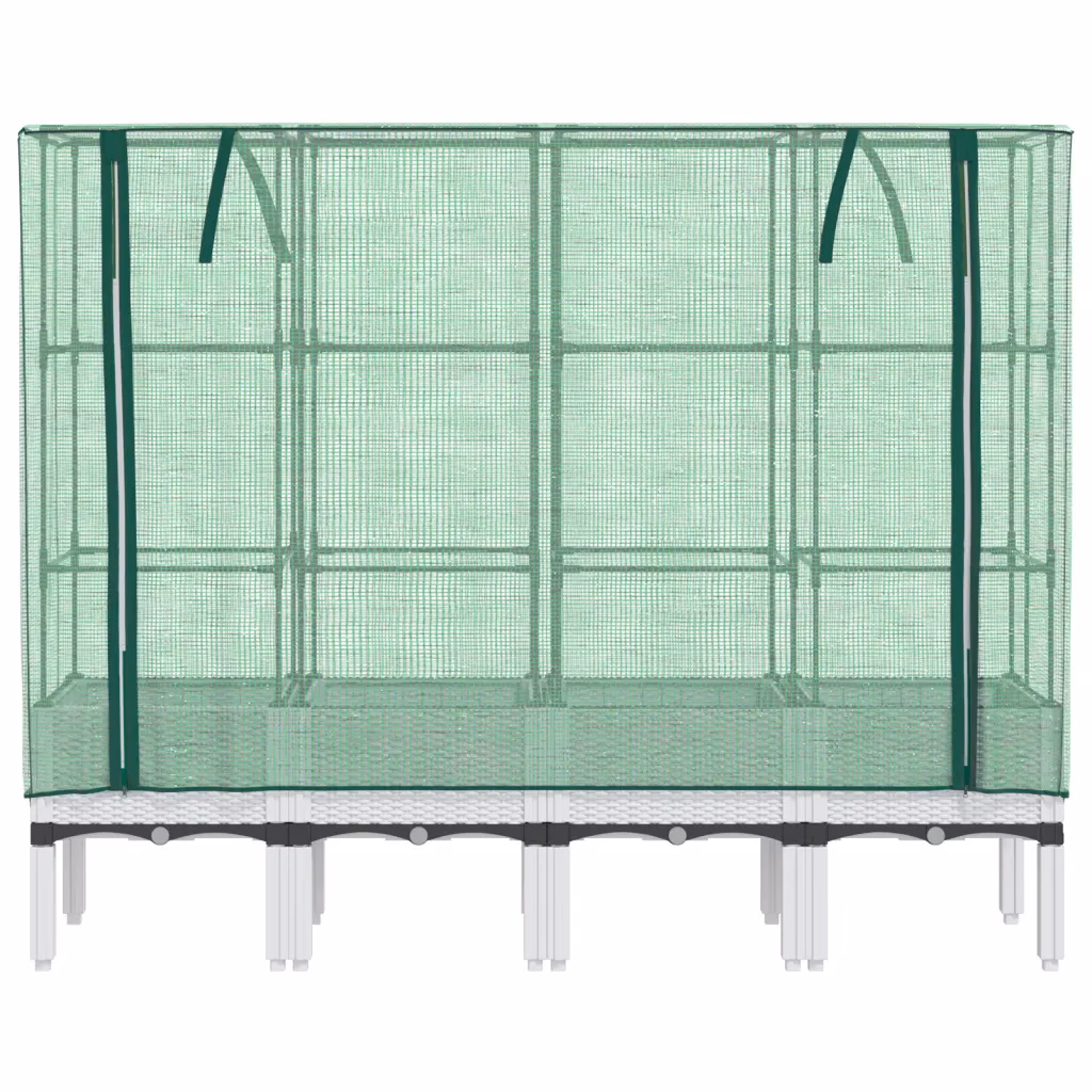 See kasvuhoonekattega kõrgendatud taimekast pakub taimedele rohkelt kasvuruumi ning kaitset ilmastiku ja kahjurite eest. Valge rotangiimitatsiooniga korpus sobitub erinevate aedade ja terrassidega, samal ajal kui vettpidav kasvuhoonekate loob taimedele soodsama mikrokliima.