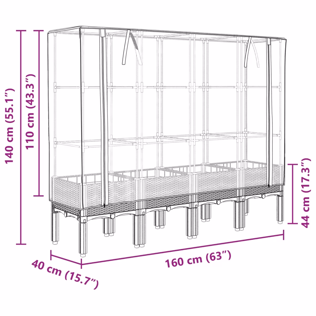 - Tugev konstruktsioon – PP (polüpropüleenist) kõrgendatud peenar koos rauast toruraamiga tagab stabiilsuse ja sobib ka kõrgemate taimede kasvatamiseks.