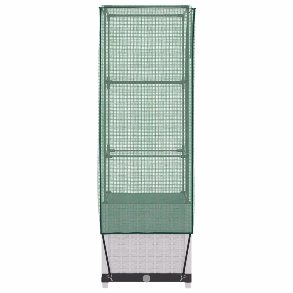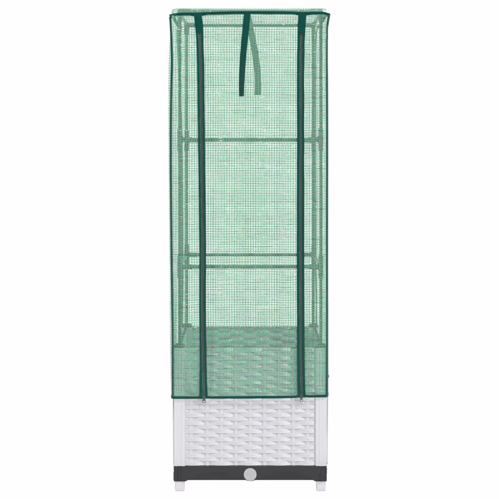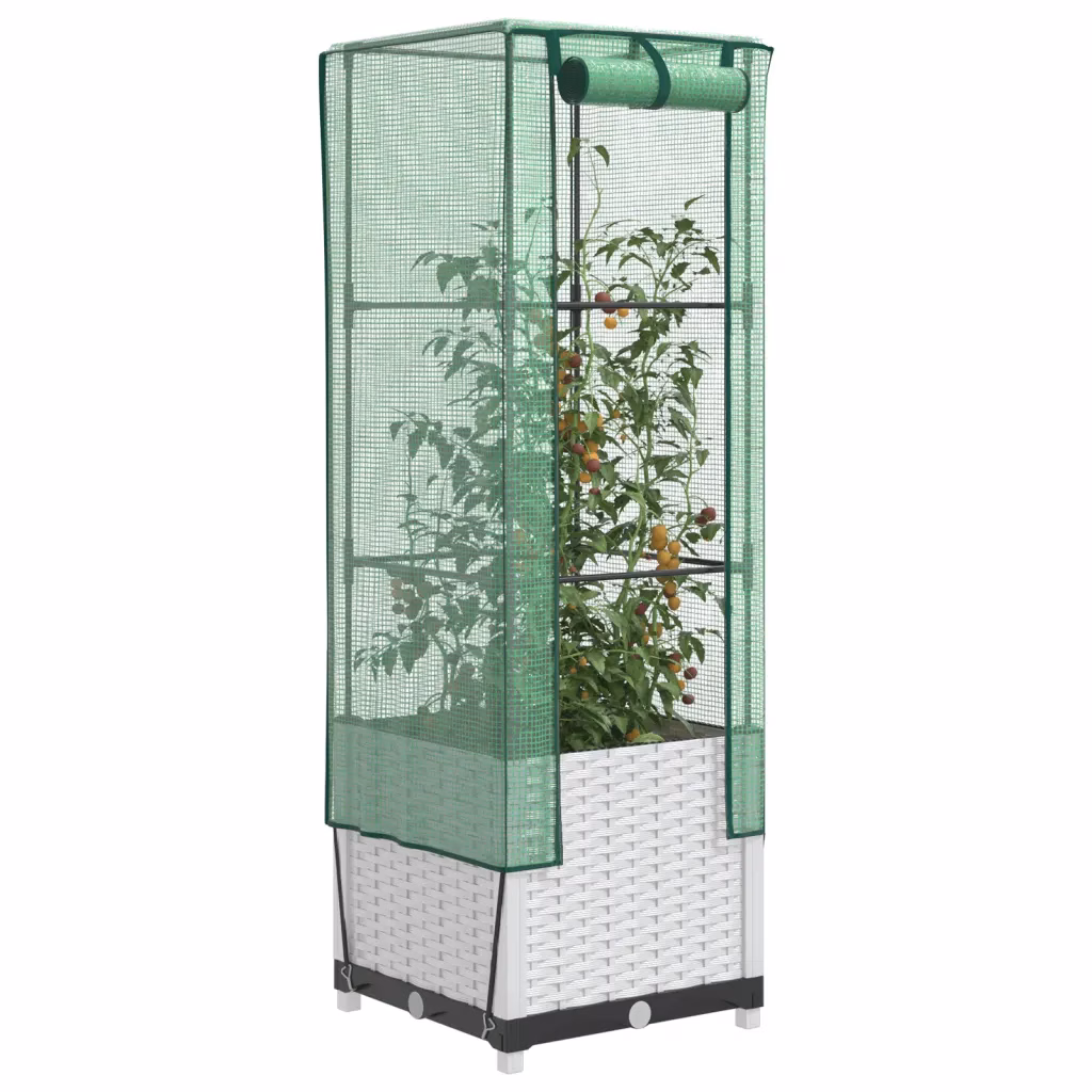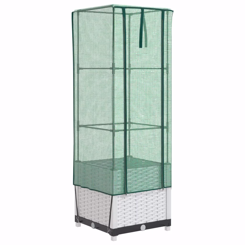 See kasvuhoonekattega kõrgendatud taimekast loob taimedele kaitstud kasvukeskkonna ka väiksemas aias, siseõues või rõdul. Tugev rauast toruraam ja vastupidav PP-taimekast tagavad stabiilse aluse, vettpidav PE-kate aitab hoida sobivamat temperatuuri ning kaitseb taimi putukate, lindude ja väikeloomade eest. Tänu rotangiimitatsiooniga valgele viimistlusele sobitub taimekast kenasti erinevate väliruumide sisekujundusega.