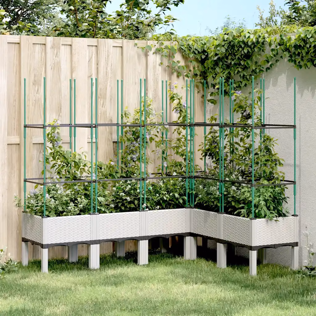 Võrega aia taimekast aitab luua korrastatud istutusala, kus ronitaimed, köögiviljad ja lilled saavad kindla toe. Valgest polüpropüleenist rotangiviimistlusega konstruktsioon on kerge, vastupidav ja sobib aeda, terrassile või rõdule. Kõrgendatud põhi 20 cm parandab äravoolu ning aitab kaitsta taimi umbrohu ja maapinnalt tulevate kahjurite eest.