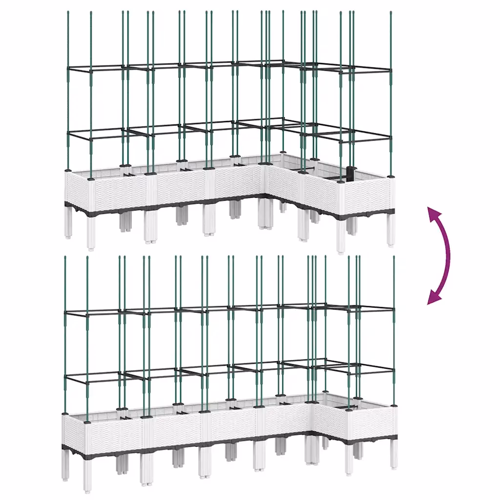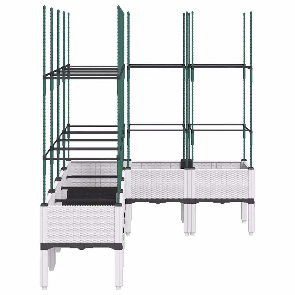 • 1 valge kõrgendatud võrega taimekast polüpropüleenist, rotangiviimistlusega ja integreeritud võreosaga.